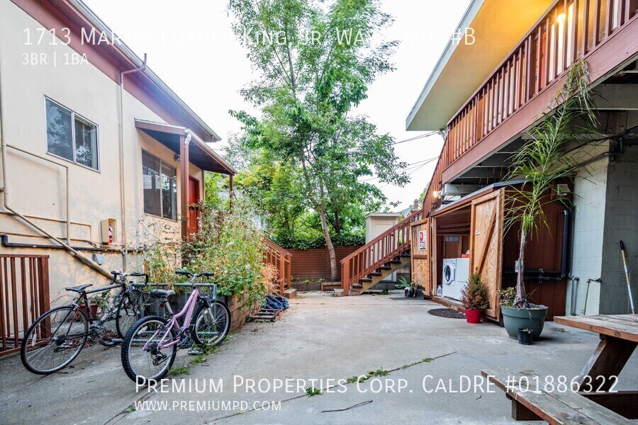 Bedrooms w/Flexible 6th Bedrooms This Spacious 3 Bedroom w/Flexible 4th Bedroom has the Following Features and Benefits: • Shared Laundry On-Site • Brand New Flooring Throughout • Well Maintained Peaceful Common Area to enjoy the sun! • Incredible Location • Professionally Property Managed For Premium Service • Close to Downtown Berkeley and Upscale Areas • Free Membership to Premium Concierge Services For Your First Lease Term • Professionally Managed For Premium Service • Zero Security Deposit Option - Fees and Restrictions may apply. See Leasing Agent for Details North MLK Walk Apartments 1711-13 MLK Jr. Way Berkeley, CA 94709 PROPERTY DESCRIPTION The North MLK Walk Apartments consist of a triplex and a fourplex sharing a common courtyard, which has a community garden and a picnic table.. This mid 1960s building is a convenient and pleasantly appointed property. There is also shared laundry on-site in the common area, saving you weekly trips to the laundromat. Guests will also find plenty of public parking in the area. THE PREMIUM DIFFERENCE This property is professionally managed for Premium Service! We treat you like a customer and you can expect a high level of service from a friendly staff who's primary goal is to make you happy. We resolve any maintenance issues quickly and efficiently. Our properties are well maintained inside and out. Why rent an ordinary property when you can live in a Premium Property? PREMIUM CONCIERGE SERVICES Get ready to live the hassle-free life at your new apartment, which comes with an awesome membership to Premium Concierge Services for your initial lease term – and guess what, it's totally FREE! Here’s what you get: >>Utility Setup & Billing >>Renter’s Insurance >>Handyman Services >>Cleaning Services >>Package Handling >>Package Return >>Trash Valet Service >>Concierge Recommendations >>And More To Come! Website: Just a heads up – some restrictions apply, so check with our agent for all the details. Oh, and the photos you see might be from a similar unit, but trust us, they’re all great! NEIGHBORHOOD INFORMATION This building is perfect for someone who wants to be centrally located close to Downtown Berkeley and the UC Berkeley Campus. Trader Joe's, coffee shops, various restaurants, and cafes are walking distance from the building making this location very convenient just a quick walk to everything. Ohlone Park is located directly across the street and is perfect for small picnics, sunbathing, and basketball. If you enjoy a vast array of neighborhood cafes, great coffee shops, interesting and eclectic retail stores, you will feel instantly at home. The area of North Shattuck Ave offer some of the best restaurants in the East Bay Area including the Cheeseboard and Chez Panisse. The Downtown Berkeley BART station and bus lines are close, making your commute easy to access by public transit. There is also ample street parking in the area for your guests!