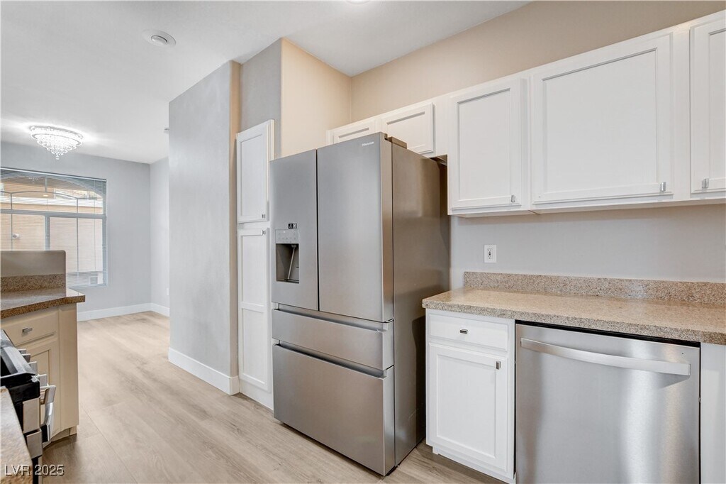 Spacious and stylish 3 bedroom condo with an attached 1 car garage located in a highly desirable guard-gated community in Summerlin North! This home offers a bright and open floor plan featuring tile and luxury vinyl flooring throughout, along with ceiling fans in every room, including all bedrooms. The inviting living room with a cozy fireplace creates the perfect setting for relaxing or entertaining and it opens to a private balcony that can also be accessed from the primary bedroom! The kitchen features granite countertops, plenty of cabinet space and all appliances included. A large laundry room adds extra functionality with built-in cabinets and a utility sink. The primary suite is a true retreat with a walk-in closet, and an en suite bathroom offering dual sinks, a separate shower and a soaking tub! Located within a beautifully maintained community, residents enjoy access to resort-style amenities including a clubhouse with a fitness center, sparkling pool and relaxing spa!