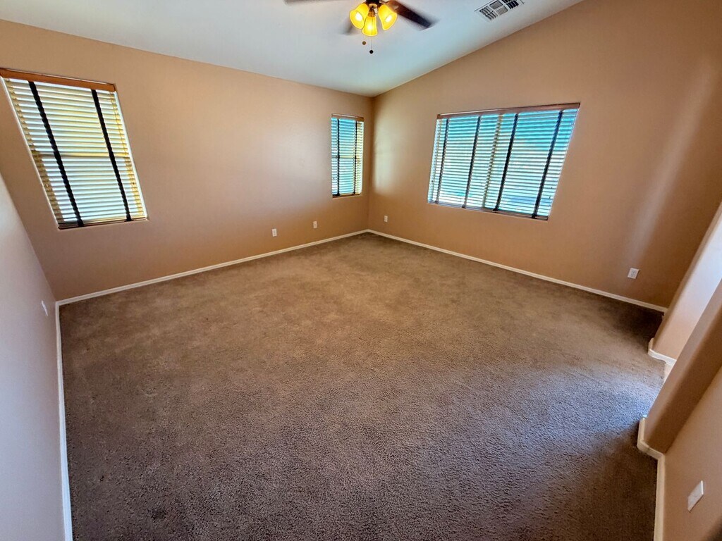Welcome to this large 4-bedroom, 2.5-bathroom home in a quiet neighborhood. With a spacious open-concept floor plan, this home offers a bright and airy atmosphere perfect for both everyday living and entertaining. The large kitchen offers plenty of cabinet space with black appliances, pantry and an island with a breakfast bar. A dedicated laundry room with washer/dryer and half bath completes the first floor. As you walk up to the second floor, you will find a loft area for flexible space. The primary suite is your private escape featuring a generous walk-in closet and an ensuite bathroom with dual sinks, separate toilet room and a separate shower and soaking tub. Three additional bedrooms all with closets provide flexible space for guests, a home office, or hobbies and share a guest bath. Step outside to your private backyard with a covered patio, and desert landscaping. The large two-car garage and extra driveway space accommodate both vehicles and toys with ease. Minutes to RT 303, Sam's Club, shopping and restaurants. Home is friendly to a max of 2 spayed/neutered pets with $350 per pet fee. We do not list on CRAIGSLIST OR FACEBOOK MARKETPLACE SO IF YOU SEE IT ON THERE IT IS A SCAM $50.00 non-refundable application fee per person, age 18 or over. Full security deposit of $1,895 due upon approval. Move in date must be between 7 & 30 days from lease signing/payment of security deposit. If moving in on or after the 5th then pro-rated current month rent is due as well as the following full month. All rent is due 7 days prior to move in.
