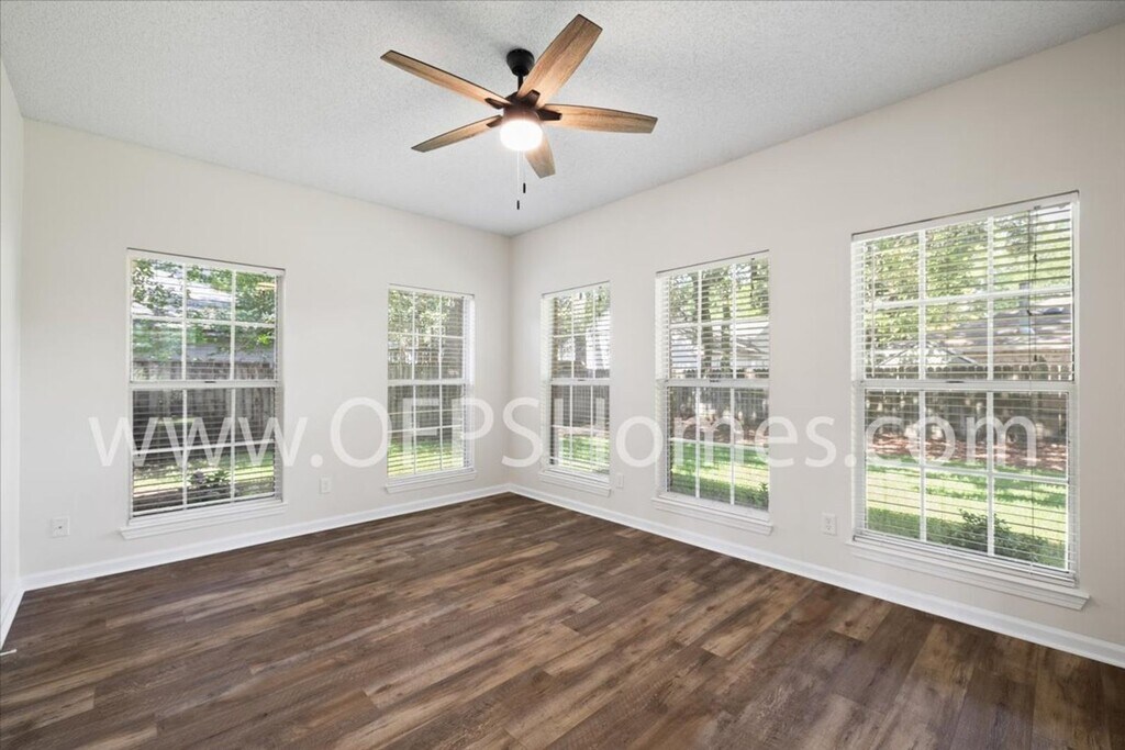 AVAILABLE IN JAN! Brick 3 bedroom, 2 bathroom home in Mossy Oaks on a larger lot near the end of a quiet cul-de-sac. Includes a flex room that can be used as an office or additional bedroom. Family room has cathedral ceilings, a gas fireplace, and opens to a sunny Florida room. Updated kitchen with granite countertops, subway tile backsplash, and full kitchen appliance suite. New luxury vinyl plank throughout main areas and carpet in the guest bedrooms. Luxury vinyl plank throughout main areas and carpet in the guest bedrooms. Beautiful large yard. Interior neutral painted. *Occupied but easy to show.* NO smoking. 600 minimum FICO credit score required in addition to meeting rental criteria. Pets allowed upon approval with a non-refundable pet fee. All applicants are required to complete an application on regardless of if they own a pet or not. Applicants with an ESA are also required to complete the application. We also offer a security deposit waiver option for tenants such that they do not have to pay a security deposit upfront. Terms and conditions apply. Review addenda for details.