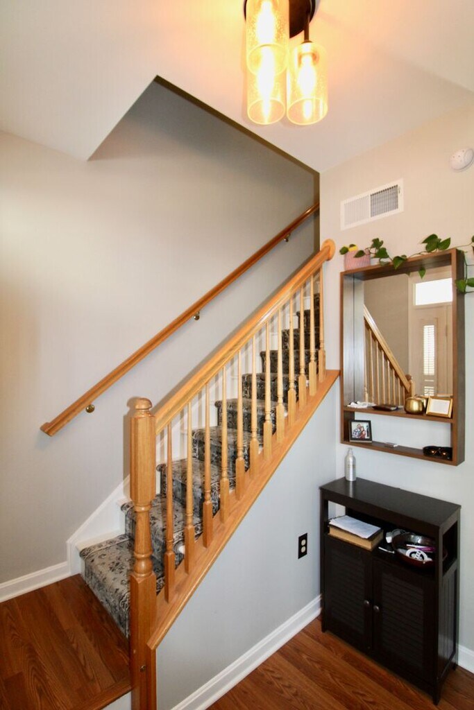 Beautifully updated townhome with backyard and garage in Midtown! Enjoy all of the modern amenities of a newer house in the historic city center! This home features engineered hardwoods flooring throughout, updated kitchen and baths and laundry (washer and dryer included) on the bedroom level. The kitchen has stainless steel appliances and bar seating as well as an area for a kitchen table. There is a jack and jill bathroom in between the two 2nd floor bedrooms and a half bath on the main floor. Enter the back yard through the kitchen. Patio pavers offer a hard surface for an outdoor dining set or fire pit. The 2-car garage is just beyond. Tenant pays for all utilities and is responsible for lawn and snow maintenance. Applicants are required to have a 600or higher credit score, monthly income 3X the monthly rent and no past evictions. Criminal History will be assessed as part of the application. Section 8 is not permitted.