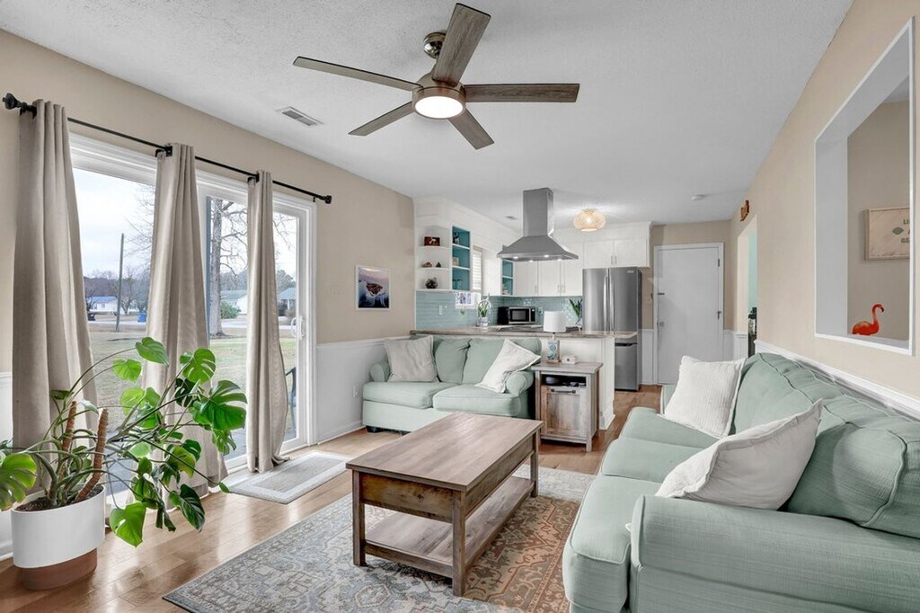 Ideally located between Jacksonville and Wilmington, this home is just minutes from the ocean, Topsail Beach, golfing, restaurants, shopping, and military bases including Camp Lejeune, New River Air Station, Stone Bay, and MARSOC. This charming 3BR/2BA single-level home with 1-car garage on a nearly half-acre corner lot in Sneads Ferry—no HOA. Features laminate flooring, spacious living room, open kitchen and dining area, and a private primary suite. If you’re looking for a comfortable, well-maintained home near the beach and bases, this is the one!