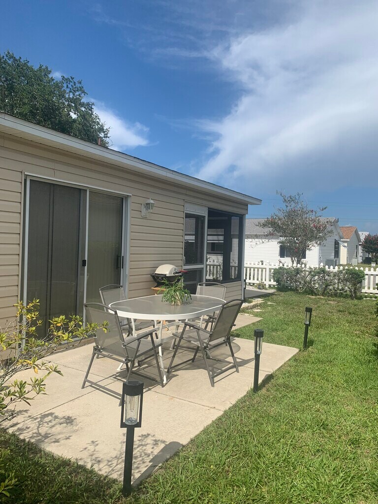 My husband Scott and I aim to create a pleasant experience for you. If this is your first time visiting The Villages, peruse maps and informational binders to help you learn all that The Villages offers. Walk in and be greeted by a welcome gift basket to begin enjoying treats from local vendors. A daily copy of The Villages Daily Sun newspaper will help you keep track of what's happening when and where. This dog-friendly patio villa rental by owner is fully furnished with everything you need to start or stay living in sunny Florida with multiple places to sit and enjoy meals and all of your activities. If you are looking to live in the Villages but don't want to buy or perhaps you need a place to live while you are building or searching for your new home, this is the perfect place. Ours is an open floorplan, Colony model with all major appliances including washer and dryer, central heating and air and an outdoor gas grill. The kitchen is equipped to meet your cooking needs stocked with paper products and storage wraps. Vinyl floors throughout make clean-up a snap with dogs. Water, trash collection and lawn maintenance are also included. A desk in the guest bedroom provides a convenient work space if needed. The garage houses one car plus a golf cart and is equipped with a small work bench. The living room features a couch and two reclining chairs for relaxing during those Florida rainy moments or for watching TV. Front of the home features an open lanai with chairs and table for your morning coffee or watching the sun set. The main bedroom has a comfy king-size bed and the guest bedroom is furnished with a queen sized bed, each with new linens. Bathrooms have brand new chair-height toilets and fixtures. Guest passes included. Complete with 4 person golf cart! Available for 6 month minimum as of November 1, 2025