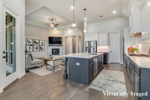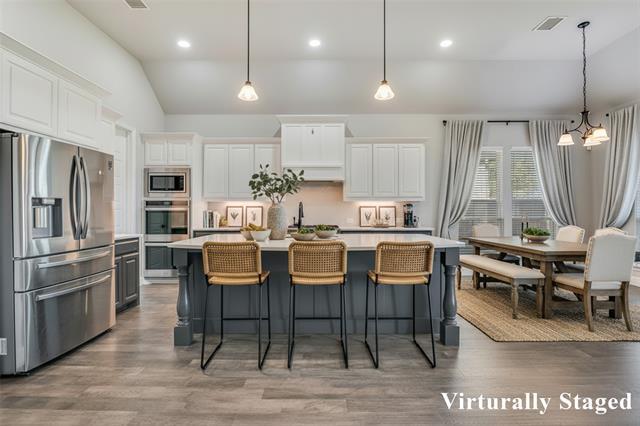 Welcome to this beautifully designed 3 bedroom, 3.5-bath home located in the Stone Creek subdivision within Rockwall ISD. The open-concept layout seamlessly connects the main living area featuring a cozy gas-starter fireplace, a bright, eat-in kitchen outfitted with stainless steel appliances, including a refrigerator. Step outside through the living room to a covered patio, perfect for relaxing or an entertaining backyard oasis. A dedicated media room offers the ideal setting for movie nights or watching sports. The utility room comes complete with a washer and dryer for added convenience.