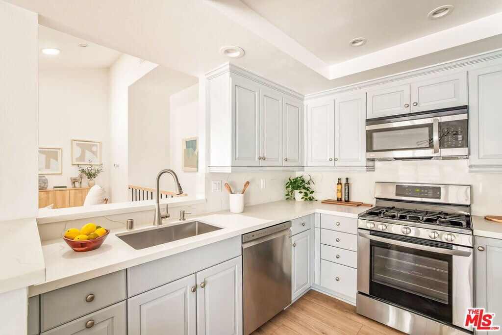 Welcome to your own slice of paradise in the peaceful Palisades Highlands. This fully updated, light-filled corner townhome offers 2 bedrooms, 2 bathrooms, and a versatile bonus room off the laundry area perfect for a home office or gym. The private two-car garage provides direct access to the main living level, where vaulted ceilings and a cozy fireplace anchor the open-concept living and dining area. Thoughtfully renovated throughout, the home features a brand-new kitchen with modern appliances, updated wood flooring, new tile and stone finishes. A spacious front patio invites seamless indoor/outdoor living with tranquil views of the surrounding mountains. Enjoy resort-style amenities just steps from your door, including scenic trails, a community pool, spa, and gym. Fully remediated following the Palisades fire, this home is move-in ready and better than ever. MLS# 25577181