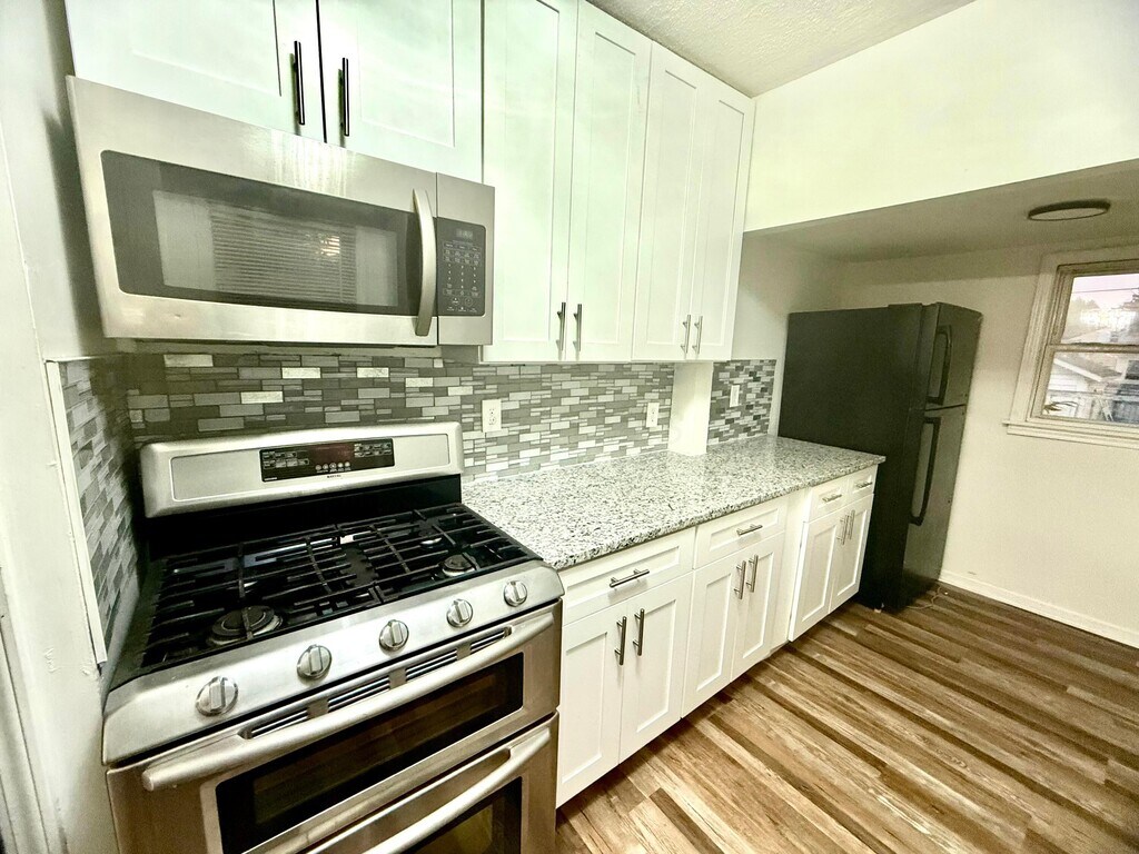 Fully Renovated 2-Bedroom Home with Fireplace,Brand-New Kitchen & 2-Car Garage This beautifully updated home offers two spacious bedrooms,a bright dining area,and a comfortable living room featuring a charming fireplace. The brand-new kitchen includes modern finishes,new cabinetry,and updated appliances—perfect for everyday living. The property also includes an unfinished basement with an extra room and washer and dryer hookups,providing plenty of storage and flexibility. Outside,you'll find a detached two-car garage and a private yard. Conveniently located close to major highways and just minutes from downtown,where you can even enjoy a view of the city skyline right from the property. Don't miss this move-in-ready rental—modern comfort in a great location!