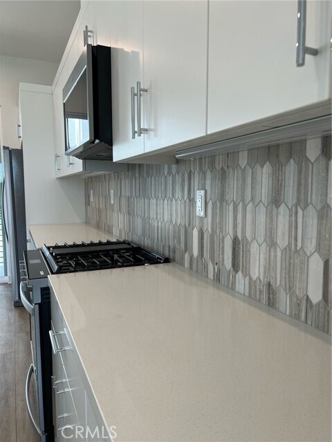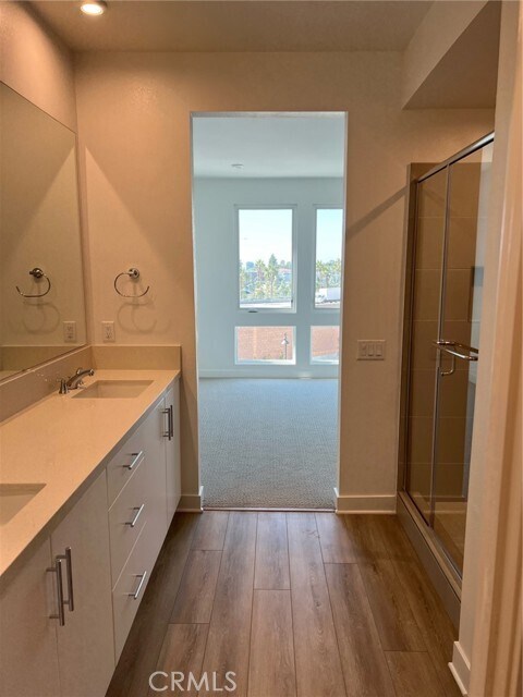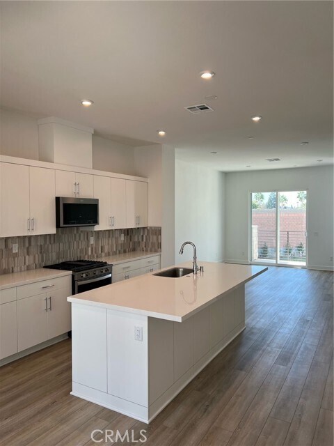 GATED community at 100 West in Anaheim. Well-styled contemporary luxe. Come home to a welcoming foyer and downstairs bed/bath flowing up the inviting stairs to the spacious great room, casual dining area, and desirable covered balcony. The well-designed gourmet kitchen is highlighted by a center island with breakfast bar, plenty of counter and cabinet space, and sizable pantry. This home has upgrades, in Kitchen Quartz Countertops & vertical backsplash, in primary bathroom upgraded shower walls. The serene primary bedroom suite is enhanced by an ample walk-in closet and spa-like primary bath with luxe shower and private walk-in closet. Secondary bedrooms feature roomy closets and shared bath. Additional highlights include custom window coverings throughout a convenient second level powder room and centrally located third level laundry and spacious roof top deck with a spectacular view of Disneyland’s Fireworks display. 100 West is centrally located in the heart of Orange County minutes to major entertainment & shopping centers such as Disneyland, Honda Center, Angel Stadium Walk. Easy & convenient access to excellent medical centers, college campuses, major freeways & transportation hubs. Solar panels installed to help reduce electric bills. Parking is limited to two (2) cars in attached garage. MLS# TR25220110