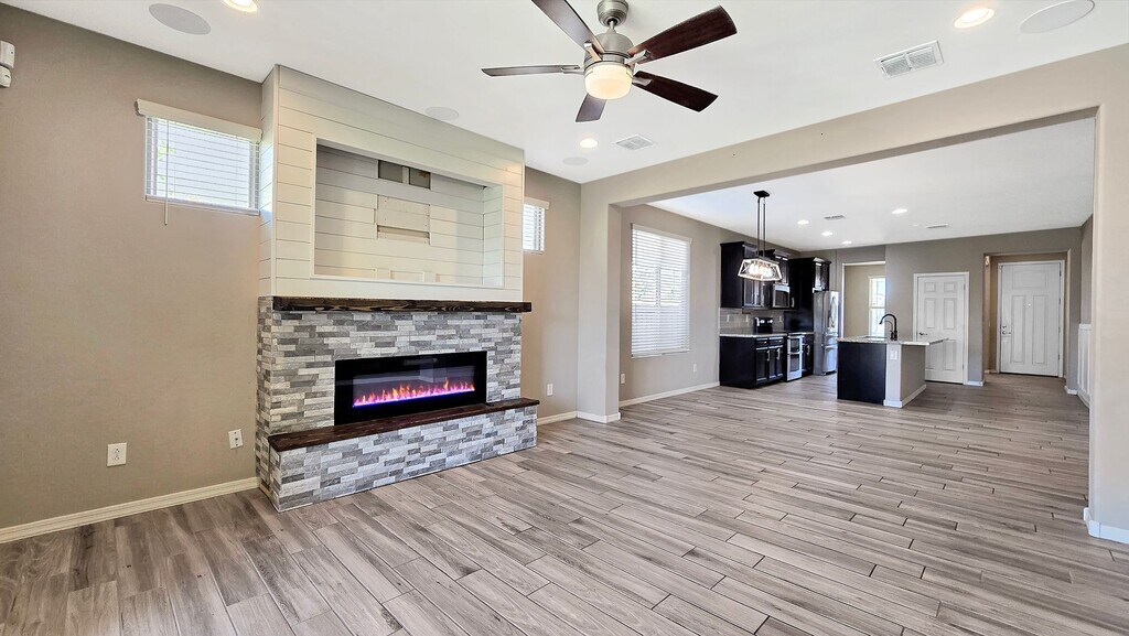 Welcome to this amazing home in Goodyear, AZ, offering exceptional value for money! This stunning residence boasts four spacious bedrooms and 2.5 well-appointed bathrooms. The upgraded kitchen is a chef's dream, featuring granite counters and an upgraded electric range. The living area is enhanced by a cozy fireplace, perfect for those cooler evenings. Step outside to a gorgeous backyard, complete with lush turf and a handy storage shed. An RV gate adds to the convenience and functionality of this property. The home is in a prime location, with easy access to I-10 and the loop 303. Shopping and dining options are just a stone's throw away. This home is like new and ready for you to make it your own. Don't miss out on this fantastic opportunity! $2400 security deposit, $400 cleaning deposit, $400 pet fee IF the owner approves your one small dog. $20 monthly admin fee. Tenant must maintain tenant insurance during their tenancy.