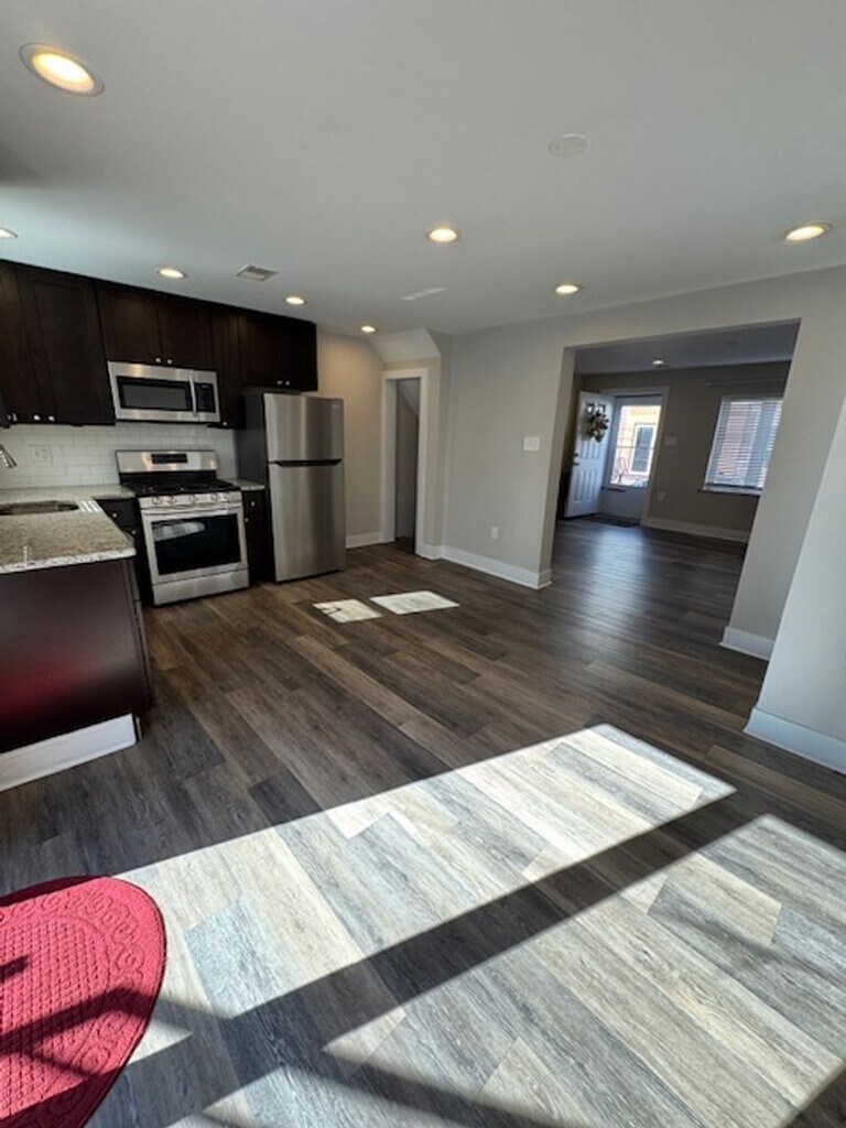 This renovated, extra wide, brick front home is located in the heart of beautiful Marconi Park West. It is one block from Barry playground, In walking distance of all of the Sport's arenas and other Philly landmarks like Chickie's and Petes, Philadium, Skinny Joey's, and much more. The first floor of this home has a very large open living room and dining room with Coretec flooring and many high-hat lights. The newer kitchen is fitted with excellent cabinet space, stone countertops, stainless appliances, garbage disposal, and tons of natural light especially with the sliding glass door leading to the yard. The basement is finished with great amenities including a half bath, storage closet, and laundry room. The Second floor has 3 beds and 1 bath and features refinished original pine flooring and ample high lighting. To top it all off, there is central air and heating!