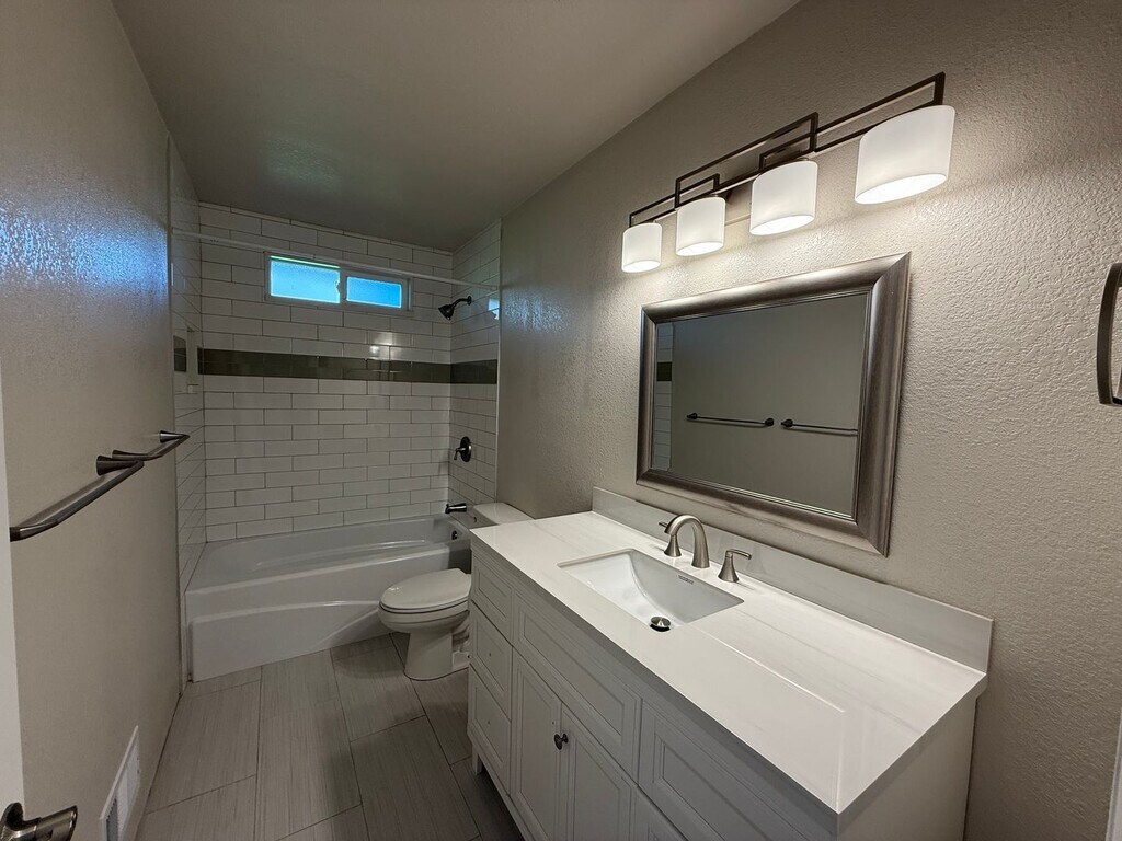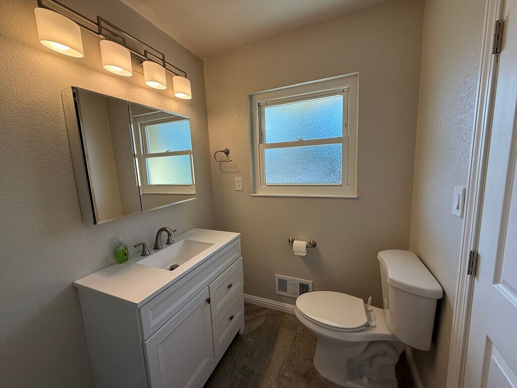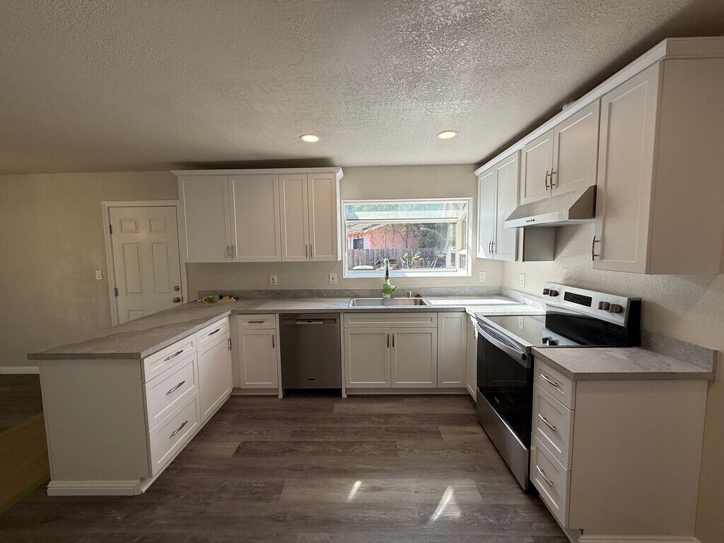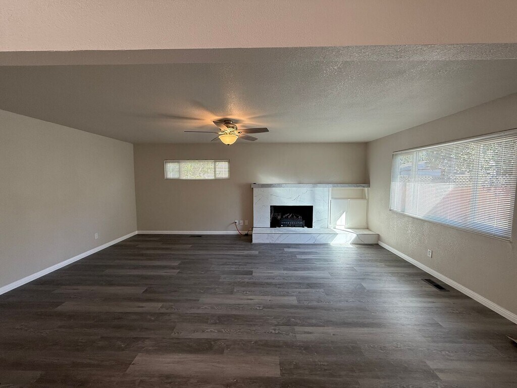 Newly updated single story 3-bedroom, 2-bathroom home with approximately 1,456 square feet located in Modesto. Be sure to check out the video tour on our website or YouTube channel. Freshly painted interior. New Luxury Vinyl Plank flooring throughout the home. Bright living room with electric fireplace and ceiling fan. Dining space with modern light fixture opens to the kitchen. The updated kitchen features shaker cabinets, slab countertops, and bar seating. Appliances include electric range with vent hood, dishwasher and fridge. Closet pantry for plenty of storage. The primary suite has a new vanity and custom tiled shower stall. Hall bathroom has custom tiled shower over tub. Central heating and air conditioning. Attached two car garage with automatic opener and laundry hook ups. Conveniently located close to highway 99 and highway 132. Landscaped front and backyards with sprinkler system and patio. Tenant is responsible for all utilities and maintaining yards. Pets are subject to approval with modified terms. $2100 monthly rent with a one-year lease. $2100 security deposit. $50 non-refundable application fee per adult. Please visit our website at or call for more details. Five Star Property Management Lic# 01 Wylie dr Modesto, CA 95355 office fax info@