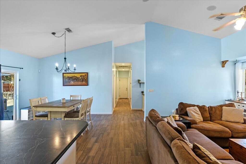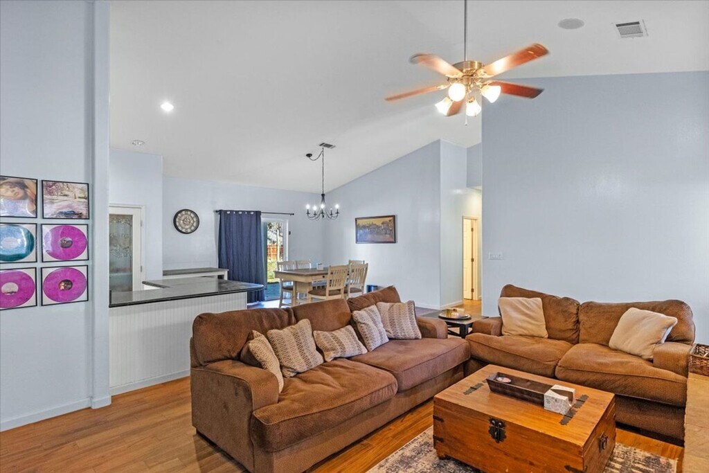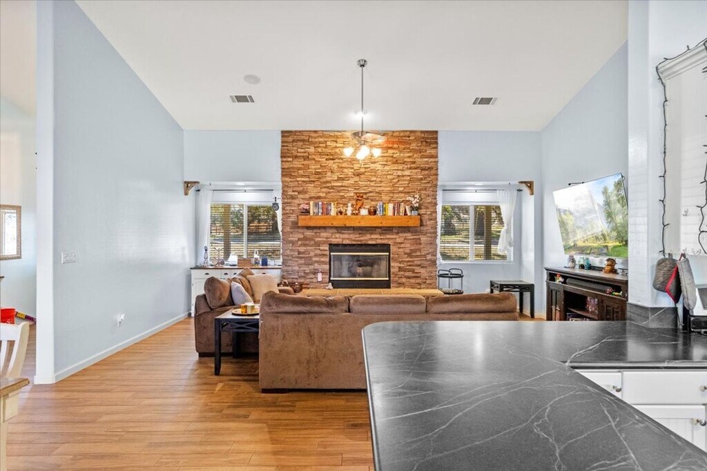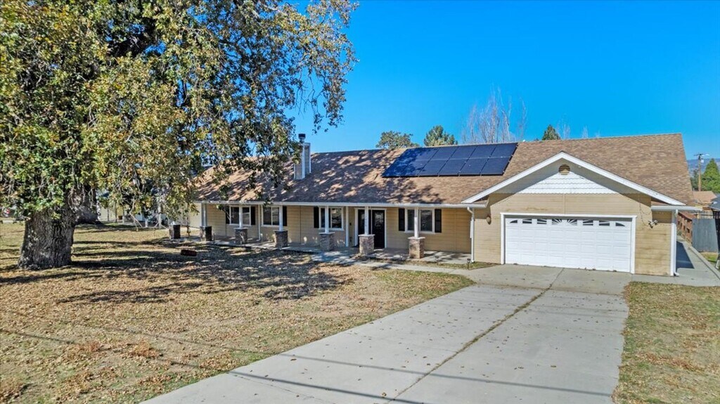 Welcome home to the community of Stallion Springs, in Tehachapi CA!!! Land of Four Seasons!This custom built, split wing floorplan home offers so many upgrades! First thing you'll be impressed by is themajestic oak tree...followed by a spacious inviting covered front porch, perfect for rocking chairs to enjoy the mountain views. Step inside thru the double doors to the formal entry and enjoy an open concept floorplan. Massive great room open to the spacious kitchen and dining area! Be impressed with vaulted ceilings, floor to ceiling ledger stone gas log fireplace with hearth & wood beam mantle & wood-look tile flooring! The bright kitchen offers white cabinets, sealed soapstone counters, stainless steel appliances (fridge included), reverse osmosis system, bar stool seating & a HUGE pantry!The primary suite is oversized and also has vaulted ceilings plus 2 closets...one is a walk-in. The spa like primary bath has dual sinks with tiled separate Jacuzzi tub & tiled/block wall shower...plus a private water closet.The 2 guest rooms are spacious & each has a walk-in closet. The guest bath has an oversized counter plus a tub/shower combo. Indoor laundry room is just off the garage.There is a BONUS room that serves as a game room/office...maybe a 4th bedroom?The large backyard has a nice covered patio and an abundance of stamped concrete for outdoor entertaining. There is an inground trampoline, shed/chicken coop plus a dog run/garden area