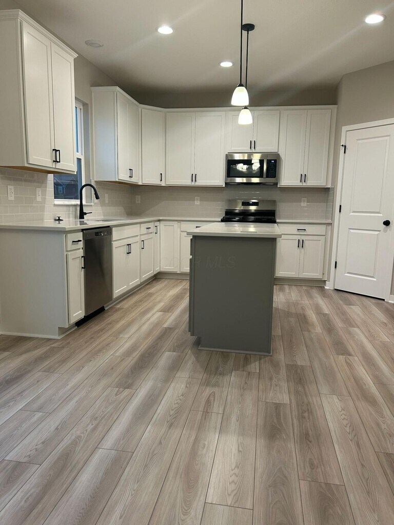 This brand-new 4-bedroom,2.5-bath home blends modern comfort with upscale design,ideally located in Berlin Township—just across from Olentangy Berlin High School and within the highly acclaimed Olentangy School District (Cheshire Elementary,Berlin Middle,and Berlin High). Thoughtfully designed,the home features quartz countertops,elegant white cabinetry,LVP flooring,stainless steel appliances,and a gas range. A full unfinished basement with 9' ceilings offers ample space and flexibility. The West-facing lot allows for abundant sunlight throughout the day and includes a beautiful,expansive backyard along with an open front yard. Situated in a lively new community,residents enjoy access to a pool,community gardens,fishing pier,and three playgrounds.