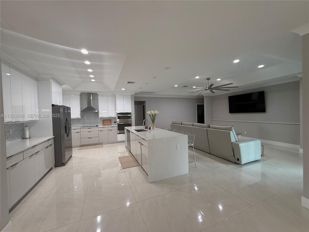 Welcome to this stunning new build, move in ready home featuring 5 spacious bedrooms and 3 full bathrooms. Designed for modern living, it also offers a dedicated office and a den/family room - perfect for work and relaxation. This home is built to last with a 5V metal roof, impact windows and doors, and a fully fenced yard. The chefs kitchen showcases 42 upper cabinets, quartz countertops, a glass tile backsplash, and brand-new stainless steel appliances. A porcelain tile floor flows through the main living areas, complemented by crown molding and detailed baseboards. Retreat to the luxurious primary suite, complete with walk-in closets, a designer shower, and a free-standing soaking tub. Exterior features include a sipersized circular driveway, and beautiful curb appeal. MLS # A11903828