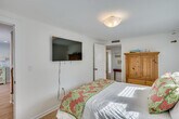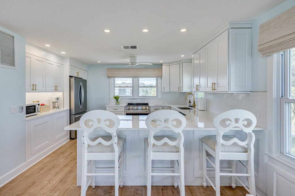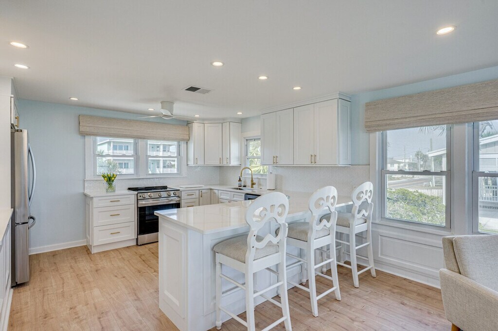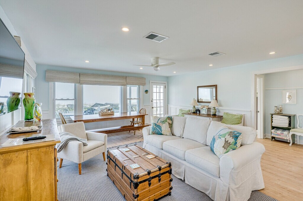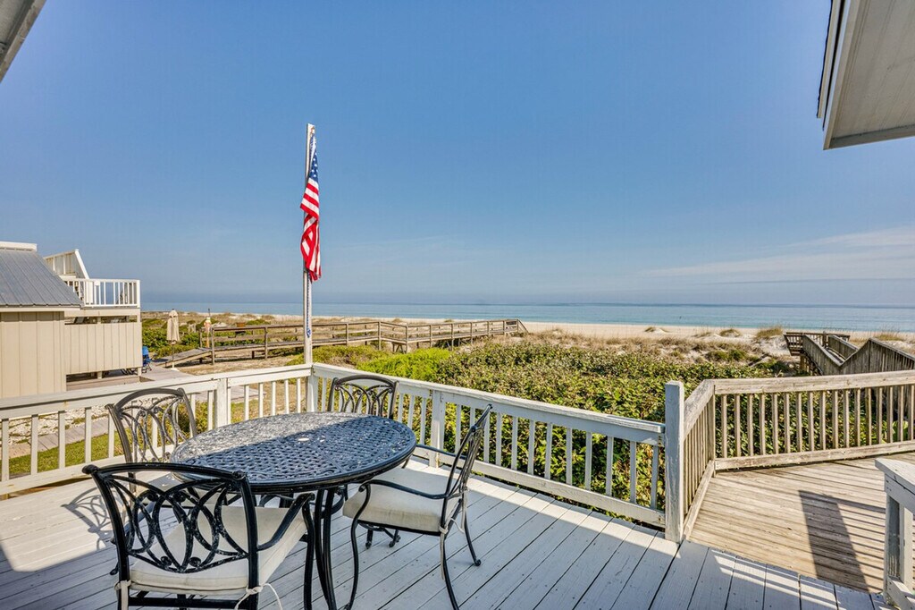 Feel at home in this 5-bedroom, 2.5-bathroom Fernandina Beach home, offering private beach access. Stairs are required to access the main floor. This nautical-chic vacation rental features a full kitchen, smart TVs, and in-unit laundry. The kitchen is equipped with a breakfast bar with seating, dishwasher, refrigerator, stove, small oven, microwave, drip coffee maker, blender, toaster, cooking basics, dishware, and flatware. Enjoy the convenience of free Wi-Fi, central air conditioning and heating, towels and linens, a washer/dryer, ceiling fans, a hair dryer, hangers, an iron/board, trash bags, and paper towels. Entertainment options include smart TVs, a DVD player, a 6-person dining table, board games, and books. This property is pet friendly with a $125 fee, plus taxes and fees. Enjoy beachside days filled with ocean air and golf swings. When you’re ready to step out, hit the links at Fernandina Beach Golf Course or visit the many restaurants nearby. Smoking, events, parties, and large gatherings are prohibited. Guests must be at least 25 years old to book. Additional fees and taxes may apply. A photo ID may be required upon check-in. [SI]