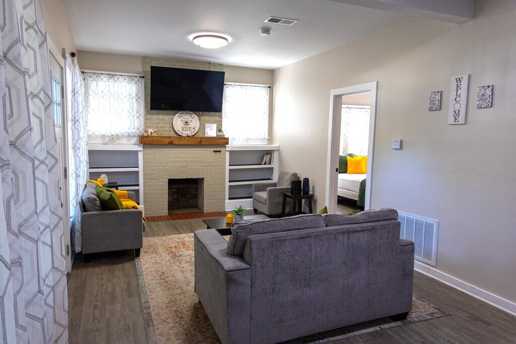Experience the perfect blend of historic charm and modern functionality at The Sweet Honey Hive. This meticulously restored craftsman home is specifically curated for traveling professionals seeking a refined, turn-key residence for mid-term stays.Designed for the Modern ProfessionalWhether you are a healthcare traveler, visiting professor, or contractor this home offers the "quiet luxury" for your assignment:Dedicated Productivity: A private, sunlit office provides a quiet sanctuary for charting or remote meetings. Need to host a guest? The office includes a comfortable sleeper sofa.Restful Retreats: Two spacious bedrooms featuring Queen-sized beds, plush linens, and high-quality "fluffy" towels to ensure you recharge fully between shifts.Gourmet Living: A fully re-imagined, open-concept kitchen flows into a dining area and a living room with seating for eight—ideal for hosting colleagues or relaxing after a long day.Seamless Utility: Includes high-speed WiFi, an in-unit washer/dryer, and all the "curated touches" of a designer-built home.Unbeatable Location & ConnectivityThe Sweet Honey Hive puts you at the center of Montgomery’s most vital hubs:Medical & Academic Proximity: Within walking distance to Alabama State University and Huntingdon College. Local hospitals are just minutes away, making your morning commute Friendly: Enjoy immediate access to the I-65 and I-85 corridors, allowing you to navigate the city or head out for weekend trips with ease.Local Flavor: Situated near charming local boutiques and essential shops. You’re never more than a few blocks away from a fresh cup of coffee or a quick grocery run.The Professional’s Choice: This isn't just a rental; it’s a fully re-imagined home designed by a local builder specifically to provide the convenience of a hotel with the soul of a historic neighborhood.Secure your stay at the Hive—where historic character meets modern professional needs.Centrally Located, You're Close to So Much, see below:EJI Museum - 3 milesMaxwell AFB - 5 milesBaptist South Hospital - 2.5 milesJackson Hospital - 1 mileBaptist East Hospital - 9 milesAlabama State University - 0.5 milesAUM - 8 milesHuntingdon College - 1 milesAlabama Shakespeare Festival - 6 milesRosa Parks Museum - 3 milesMPAC (Montgomery Performing Arts Center) - 2 miles