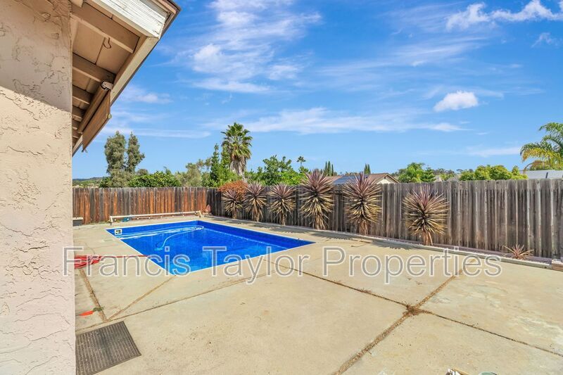 Spacious 4-bedroom, 2-bathroom home in highly desirable San Marcos with a private pool! This home features an open-style floorplan with abundant windows that fill the living areas with natural light. Freshly painted throughout with new kitchen appliances. The fully fenced backyard is perfect for entertaining, complete with a sparkling pool and patio. Additional highlights include a two-car garage for convenience and storage. FREQUENTLY ASKED QUESTIONS: Refrigerator: Not Included Washer/Dryer: Not Included Parking: 2 Car Garage Utilities / Services Included: Pool Maintenance Pet Restrictions: Up to two (2) pets considered pending successful PetScreening and Owner approval. PetScreening $25 first pet, $15 additional. Additional fees may apply. APPLICATION, LEASE TERMS, FEES: Application Fee: $50 per adult (all occupants 18+ need to submit an application). Application Processing Time: 1-3 Business Days Lease Length: 12 months Renter's Insurance: Tenant must carry renter's insurance with a minimum $100,000 liability naming Francis Taylor Properties as an additional interest. Price, terms, offerings, availability subject to change. All information deemed reliable, tenant to verify all. To secure the property, the security deposit is required to be paid in full within 24 hours of lease signing. For additional questions please call/text Freddie at 7 6 0 8 7 7 1 6 3 0. Francis Taylor Properties | DRE #01940903