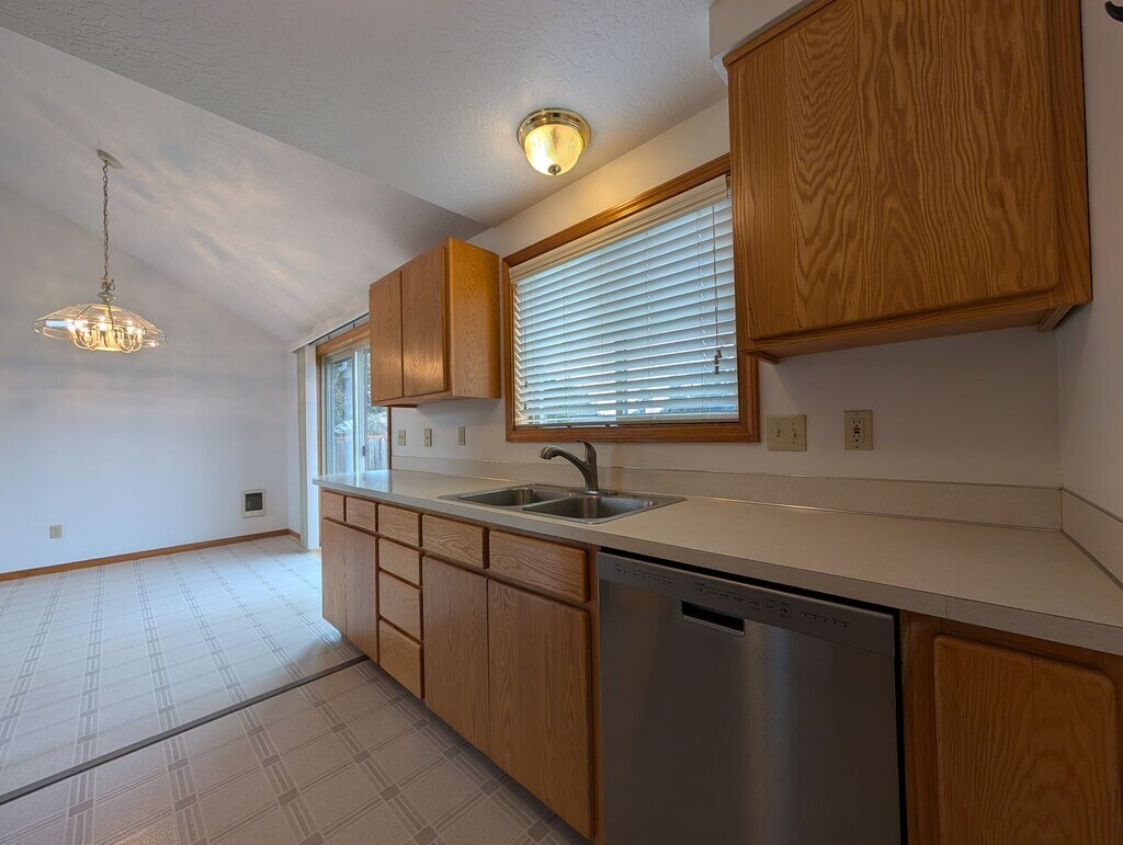 Great 2 bed/1.5 bath duplex in Thurston. This great home offers a large living room with vaulted ceilings, plenty of natural light and a wood fireplace. The dining room is attached to the galley style kitchen and features a sliding glass door that leads to the fenced in backyard. Also offered on the first floor is a mud room with W/D hookups and ½ bath. Upstairs you will find one large bedroom with built in desk and one bedroom with a nice walk-in closet and share a nice bathroom with tub/shower combo. Appliances/ Amenities: Refrigerator Stove/Range Dishwasher Washer and Dryer Hookups 1 Car Garage No Smoking Pets Negotiable No Co-Signers 1 year fixed lease term then month-to-month All utilities tenant responsibility Proof of renters insurance required upon approval