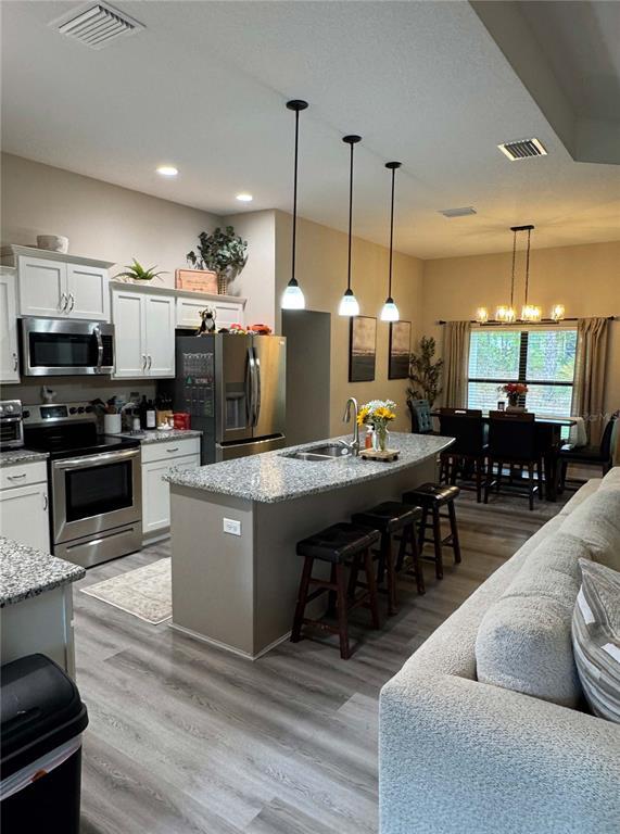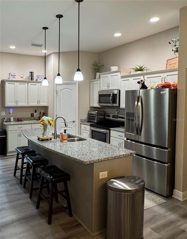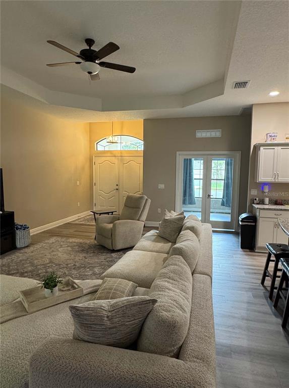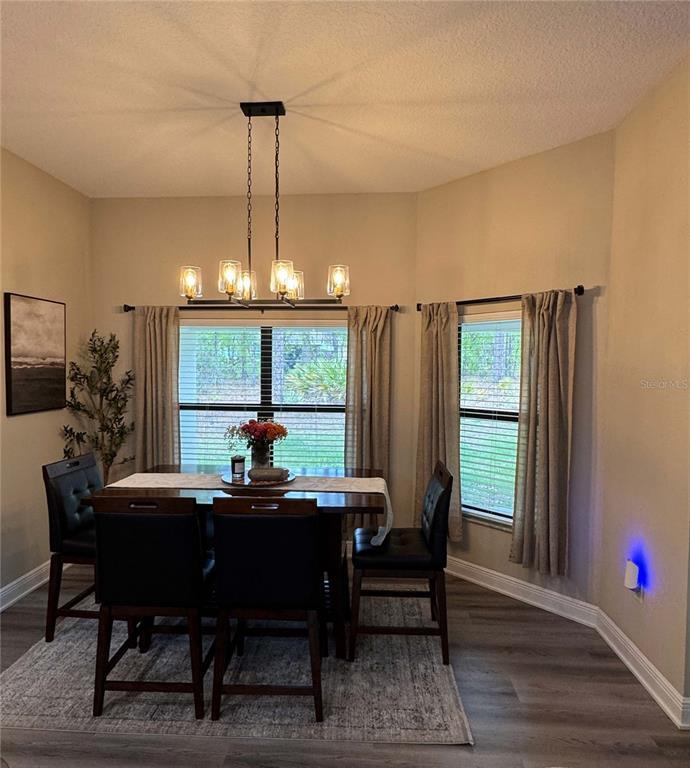 The One You’ve Been Waiting For! This stunning 3-bedroom,2-bathroom home offers an open-concept design and is nestled in a fantastic neighborhood with a prime location. As you step through the welcoming foyer,you’re immediately drawn to the grand coffered ceiling in the Great Room,accented by premium high baseboards. The spacious kitchen is a true standout,featuring a large island with granite countertops,upgraded soft-close cabinetry,stainless steel appliances with a French Door refrigerator,and durable luxury vinyl plank flooring that flows seamlessly throughout the living areas. This meticulously designed split floor plan includes a versatile bonus room—perfect as a study,den,home office,or an additional guest bedroom (no closet) when family and friends visit. The luxurious primary suite is a true retreat,boasting an expansive bedroom with a coffered ceiling,plush carpeting,and ample space to accommodate a king-sized bed,along with a cozy sitting area by the window. Two generous walk-in closets lead into the spa-like ensuite,where you’ll find a tiled floors and walk-in shower,granite countertops,soft-close vanity doors & drawers,and sleek brushed nickel fixtures. A large window brightens the space with natural light,completing the tranquil atmosphere. The 2nd and 3rd bedrooms are well-sized,feature ceiling fans and plush carpeting. One offers a walk-in closet,while the other showcases a spacious full-wall built-in closet—both providing ample storage for all your needs. The second bathroom doesn’t disappoint,with its granite countertops,upgraded soft close vanity,and a combination tub and shower with elegant brushed nickel fixtures. It’s also finished with beautiful luxury vinyl plank flooring. Enjoy the serene view of your private wooded backyard from the spacious,covered lanai—a perfect spot for relaxing,entertaining,or dining outdoors,no matter the weather. With exceptional upgrades throughout,this home blends style,comfort,and functionality—making it the perfect place to call home! MLS# TB8489018