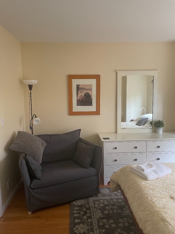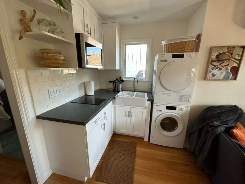 Property Id: 1188943 Charming, fully furnished, one bedroom JADU set in a peaceful garden environment with a private entry gate. The whole space has been well thought out with lots of natural light and hardwood floors in the kitchen and bedroom. The bathroom has a full bath/shower. The spacious bedroom has plenty of closet space, a chest of drawers and a queen size bed with a really comfy Casper mattress. Both sheer and blackout shades provide a good night’s sleep! We have a new kitchen with an induction cook top, microwave oven, toaster oven and a self-contained washer and dryer. Six months minimum rental.