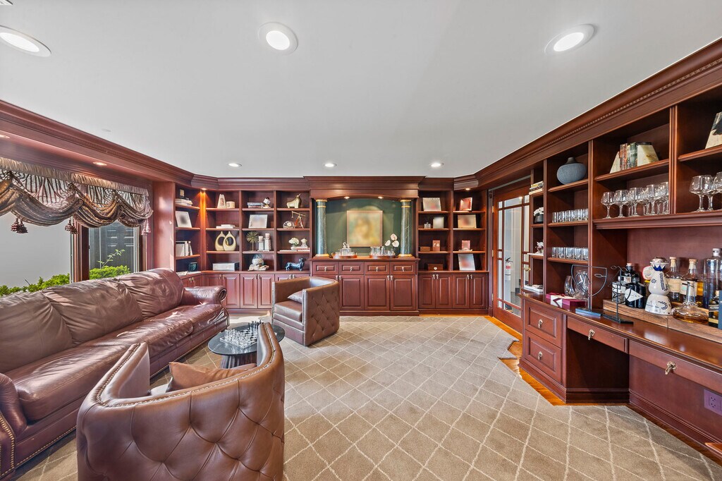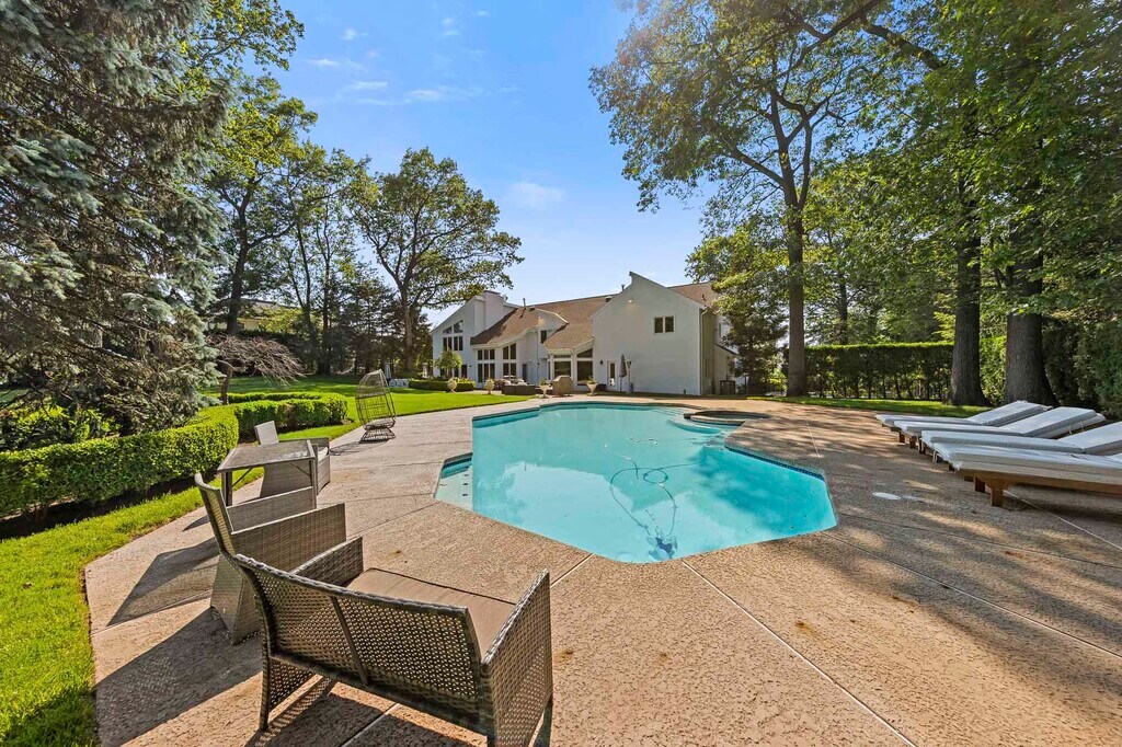 Step into unmatched luxury at this stunning Rio Vista estate, set in Cresskill’s coveted East Hill. The dramatic great room stuns with soaring two-story windows, double-sided fireplaces, and seamless indoor-outdoor living overlooking an acre of manicured grounds with heated pool and spa. A richly paneled mahogany library offers the perfect work from home space. The white chef’s kitchen features Viking and Miele appliances. Built by Joseph Di Staullo, the 6 bedroom, 6.5-bath, 9,438 sq feet home, blends modern interiors ideal for grand living and entertaining. The finished lower level boasts a theater, gym area, wet bar, game room, and wine cellar. Additional highlights include a main level bedroom suite and a 3-car garage. The luxurious primary suite includes a fireplace, walk-in closets, and a spa bath with soaking tub. Furniture negotiable.Tenant pays utilities and maintenance. Short-term rental available. Just 25 mins to NYC. Virtual tour: