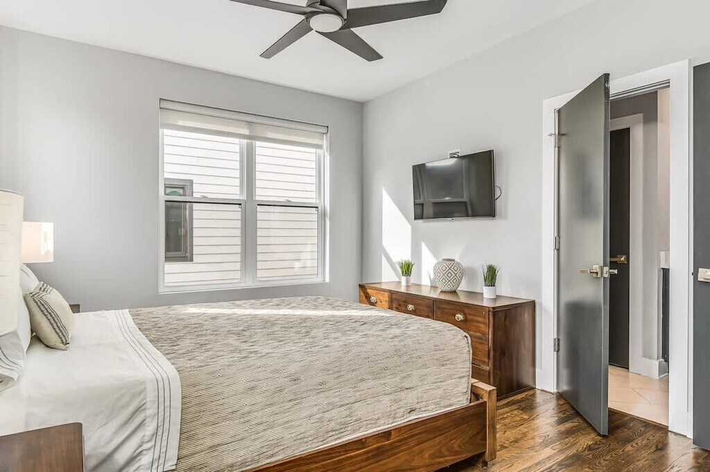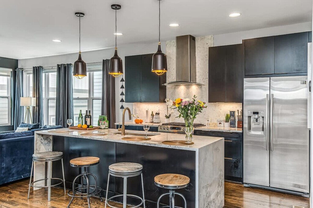 Feel at home in this modern Nashville residence, perfect for groups visiting Music City. Located just minutes from Belmont University and less than 2 miles from Lower Broadway, Nissan Stadium, Bridgestone Arena, and the iconic Honky Tonks, this home offers convenience and comfort. With 4 bedrooms and 4 baths, a fully stocked kitchen with bar seating, a spacious living and dining area, and a large rooftop patio with a gas fire pit, this property is designed for relaxation and entertainment. Enjoy the added convenience of a washer/dryer, smart TVs, Wi-Fi, and parking options including a two-car garage and driveway. The apartment boasts a fully stocked kitchen with bar seating, perfect for preparing meals and entertaining guests. The spacious living and dining area provides ample room for relaxation and socializing. Enjoy modern amenities such as smart TVs and Wi-Fi, ensuring a comfortable and connected stay. Early bag drop is available upon request for an additional $50, providing flexibility for your travel plans. Explore the vibrant neighborhood with ease, as ride-share options and nearby scooters are readily available. Visit local attractions such as The Cookery, just a 1-minute drive away, or Sadie's Nashville and The Pancake Pantry in Hillsboro Village, both within a 3-minute drive. Discover the historic Belmont Mansion in 4 minutes or take a 10-minute drive to The Parthenon. Guests are required to sign a rental agreement and must be at least 18 years old to rent. Smoking and parties are not permitted on the premises. [SI]