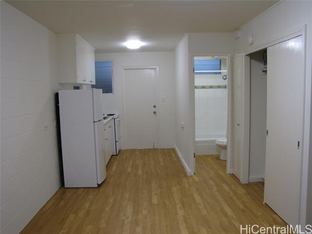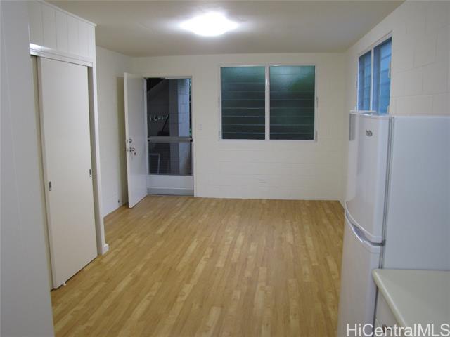 McCully Studio, Ground Floor, End Unit at rear of building, Quiet, Street Parking Only, Next to Washington Middle School & Zippy's. Renovated in 2010. New 10K BTU Window AC, Vinyl Wood-like laminate plank floors. Contemporary Louver Windows, Screen Door, Range, Refrigerator, Ceiling Fan w/ LED Light & Remote. Coin-Op Washer & Dryer. NO PETS PLEASE. NO-SMOKING or VAPING. $30-35 application fee/adult person. ********************** Parking available at additional rent: Add $75/mo Rent > Onsite month-to-month parking stall.