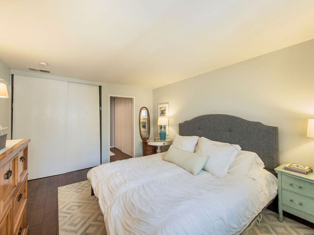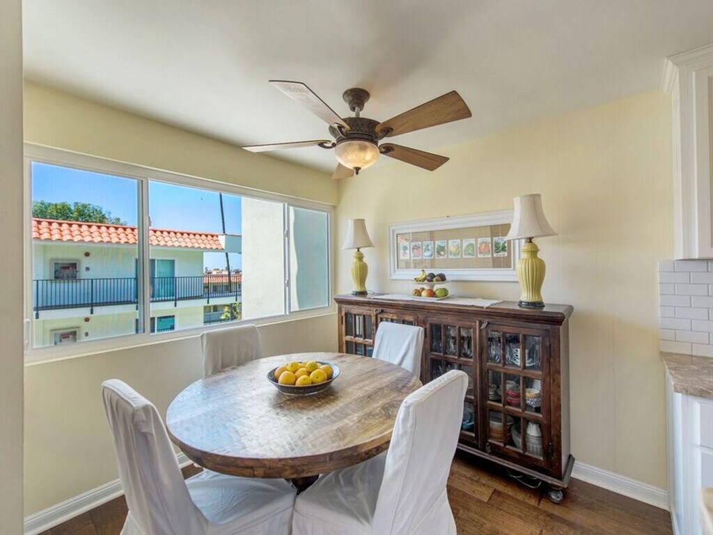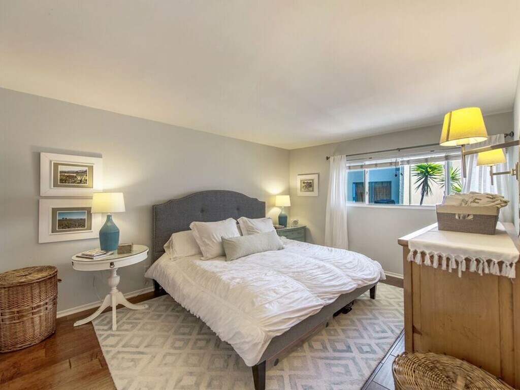 Rare updated condo for rent in the highly desirable Apple Tree complex. Classic beach living in beautiful Hermosa Beach! Located steps from the Greenbelt, one short block to Pier Avenue, amazing restaurants, shopping and the beach! This spacious, west-facing, two-bedroom residence with a gorgeous open floor plan and large balcony is perfect for entertaining and allows a ton of light into the unit. It also gets a nice ocean breeze and boasts some wonderful sunset views. Enjoy hardwood floors, updated fixtures, remodeled kitchen with white shaker style cabinets, granite counters, subway tile backsplash, stainless steel appliances and built-in cabinets. Comes with 2 side-by-side parking spaces. This secured access building shares the benefit of a heated pool, spa, and convenient laundry room inside the complex. Photos are from when a previous resident lived in the condo.