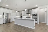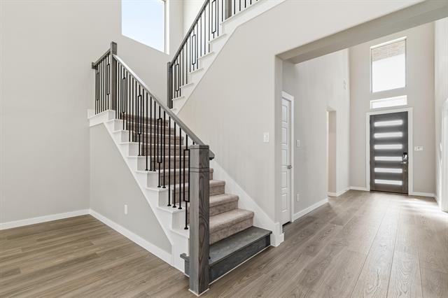 From the moment you walk in, the open-concept layout welcomes you with seamless flow between the kitchen, breakfast nook, and living room — creating the perfect space for entertaining or unwinding at home. The kitchen steals the show with gleaming granite countertops, crisp white cabinetry, stainless steel appliances (including a refrigerator!), and an oversized island that invites gatherings. The living room is a true centerpiece, featuring a striking floor-to-ceiling electric fireplace and walls of windows that bathe the space in natural light. Beautiful wood look LTV flooring extends throughout the first level, where you’ll also find a private home office, a comfortable secondary bedroom, and the luxurious primary suite. Your primary retreat boasts dual sinks, a spacious walk-in shower, and a generously sized closet with custom built-ins. The nearby utility room comes fully equipped with a washer and dryer and connects to a handy mudroom for added convenience. Upstairs, there’s plenty of room to spread out with additional bedrooms and a versatile game or media space. Outside, enjoy a large fenced backyard with a covered patio — perfect for cookouts or cozy evenings under the stars. Don’t miss the newly installed epoxy garage floors, adding both durability and style to your two-car garage. This home combines modern design, everyday livability, and smart home features — all that’s missing is you!