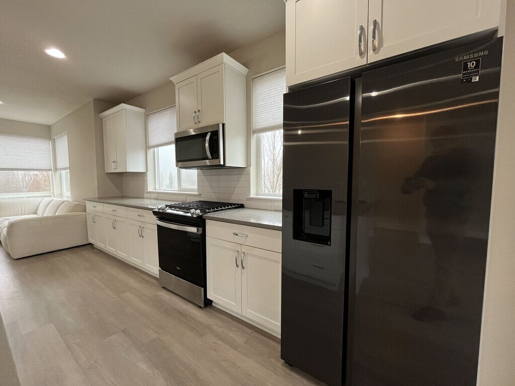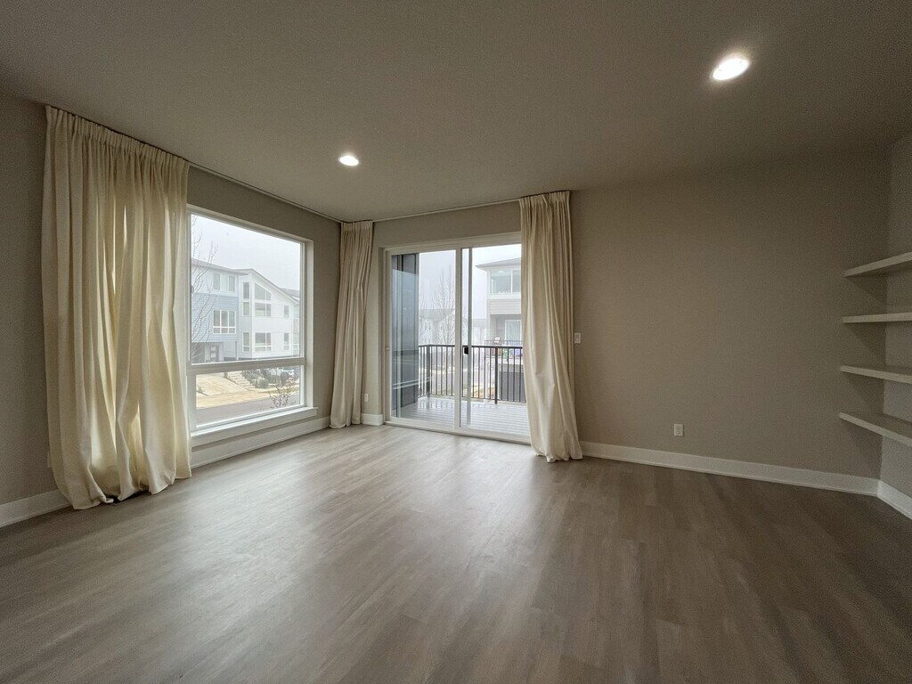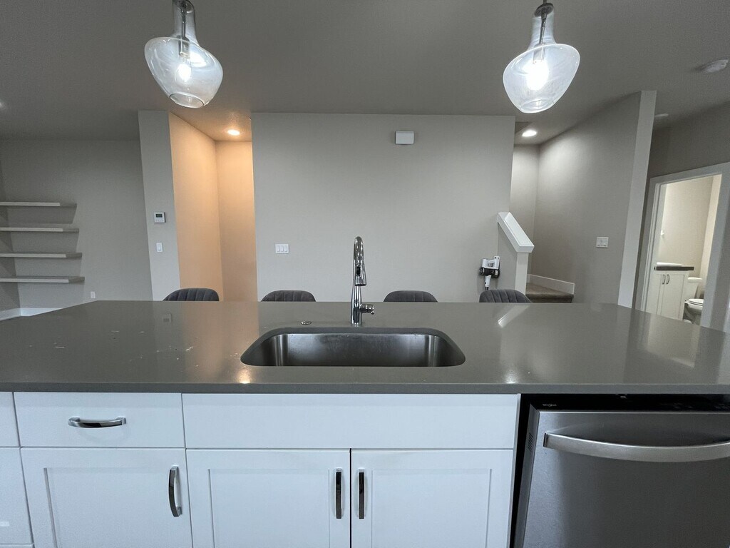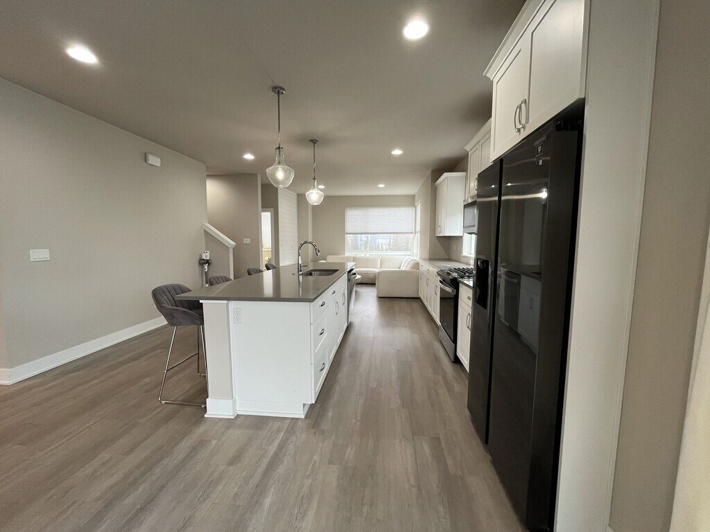 This modern three-bedroom, three-bathroom townhome offers 1,720 square feet of thoughtfully designed living space across three levels and is situated on a true corner lot, providing expansive windows and abundant natural light throughout. Located in a well-maintained community, this end-unit home blends flexibility, contemporary design, and everyday functionality. The ground level offers a welcoming entry area, an oversized single-car or two-car sub-compact garage, and a versatile bonus room. Designed to adapt to your needs, this space is ideal for a home office, gym, creative studio, or quiet retreat. An electric vehicle charger in the garage adds modern convenience. The main living level features open-concept design at its best. The kitchen serves as the centerpiece of the home, complete with a large island offering seating for four, a stainless steel single-basin sink, dishwasher, and generous cabinetry. Along the opposite wall, you’ll find a French-door refrigerator, gas stovetop and oven, mounted microwave, and additional storage. Multiple windows line the kitchen and dining areas, creating a bright and inviting atmosphere throughout the day. The dining area sits between the kitchen and balcony and includes a large window, sliding glass door, and a built-in bookshelf that adds both charm and functionality. The adjacent balcony extends the living space outdoors and includes additional storage—perfect for seasonal items or recreational gear. The spacious living room is framed by large corner windows, offering a comfortable and stylish space for relaxing or entertaining. A half bathroom on this level adds convenience for guests. All three bedrooms are located on the upper level. The primary suite is generously sized and features corner windows, a walk-in closet with built-in shelving, and a private en suite bathroom with a large vanity, matching mirror, and glass-enclosed step-in shower. The second bedroom includes carpeted flooring, a bright window, and a standard closet. The third bedroom stands out with vaulted ceilings, tall windows, and a modern pendant light fixture, creating an airy and distinctive feel. A full bathroom with a tub and shower combination and extended vanity is located between the two secondary bedrooms. A full-size, side-by-side washer and dryer are conveniently located on this floor as well. Wood-vinyl flooring on the first and second levels provides durability and style, while plush carpeting on the stairs and upper level adds comfort. With ducted heating and air conditioning, modern finishes, and multiple flexible living spaces, this home offers a well-balanced layout designed for comfort, productivity, and connection. This townhome combines modern design, thoughtful features, and flexible living options—making it an excellent choice for anyone seeking a polished and comfortable place to call home. Call or Text Our Leasing Agent to schedule a showing! English Speaking Spanish Speaking YouTube Link: Visit our website to apply and view other homes we have available! Do you need property management services? Maximize your income and cut your costs!