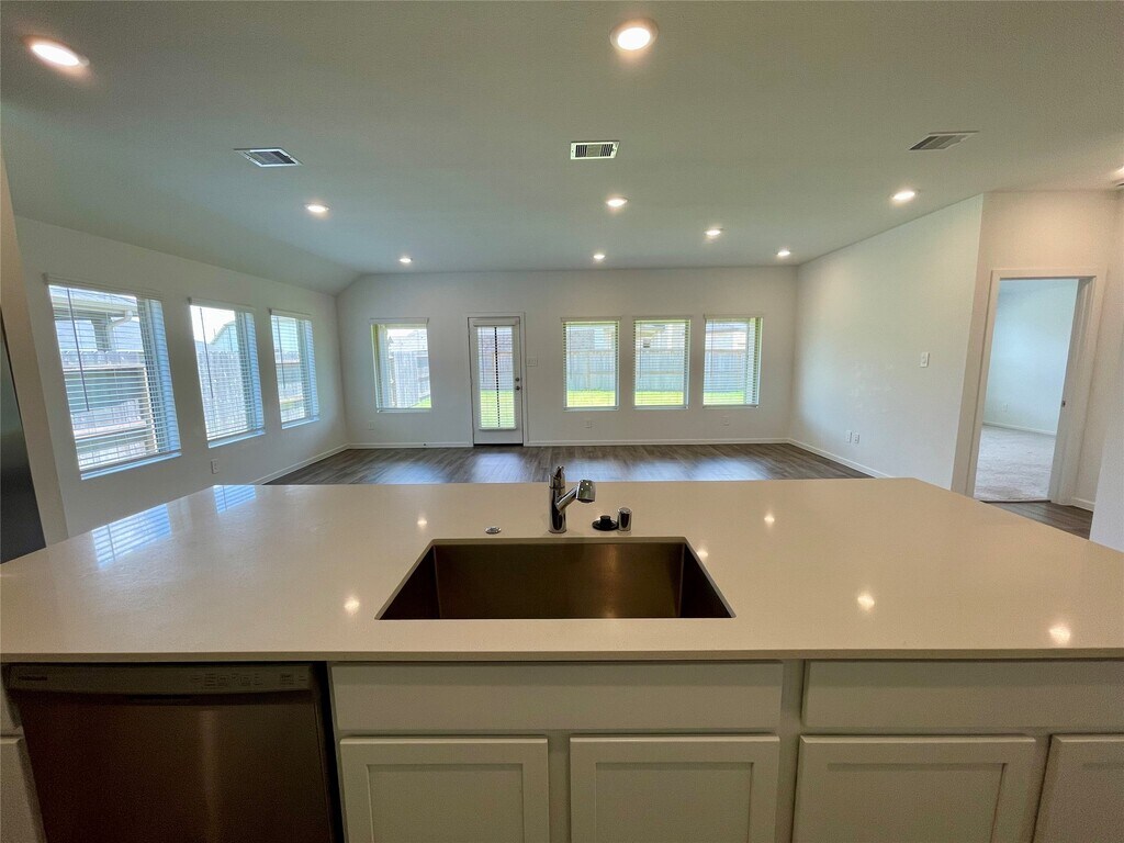Step into this stunning 1-story,4-bedroom,3-bath home built in 2024,sitting on an oversized corner lot in the beautiful community of Dellrose. With its open floor plan,nice tall ceilings,and abundant natural light from walls of windows,this home is ideal for both relaxing and entertaining. The spacious kitchen boasts tons of cabinets with plenty of storage,flows seamlessly into the living and dining areas. Enjoy a large balcony overlooking the back and side yard,offering endless possibilities for outdoor living. The study features double french doors that will provide seclusion when need be but is also located right off the kitchen. Conveniently located near Houston Premium Outlets,top restaurants,and major grocery stores—this home combines modern style,comfort,and accessibility in one of the area’s most desirable locations. Schedule your showing today! Home is vacant and ready for immediate move in. MLS# 34533108