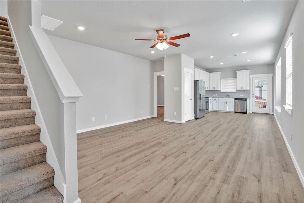 Welcome to 17205A Mayfly Dr, Pflugerville, TX 78660, a stunning 4-bedroom, 2.5-bathroom home that offers a perfect blend of comfort and modern amenities. The kitchen is a chef's dream, equipped with a gas range, dishwasher, and stainless steel appliances, including a side-by-side refrigerator. The home features vinyl floors and carpeting, providing a warm and inviting atmosphere. The primary bathroom boasts a dual vanity and a walk-in shower, while the other bathrooms offer a convenient shower/tub combo. The home also includes a full-size washer/dryer in the laundry room and central heating and cooling for year-round comfort. The recessed lighting and window coverings add a touch of elegance to the space. The 4 bedrooms are spacious, with the primary bedroom featuring a walk-in closet. The 2-car garage provides ample storage and parking space. The fenced backyard is perfect for outdoor activities. The home also includes water, sewer, trash, and landscaping services, adding to your convenience. Experience the best of Pflugerville living at 17205A Mayfly Dr.