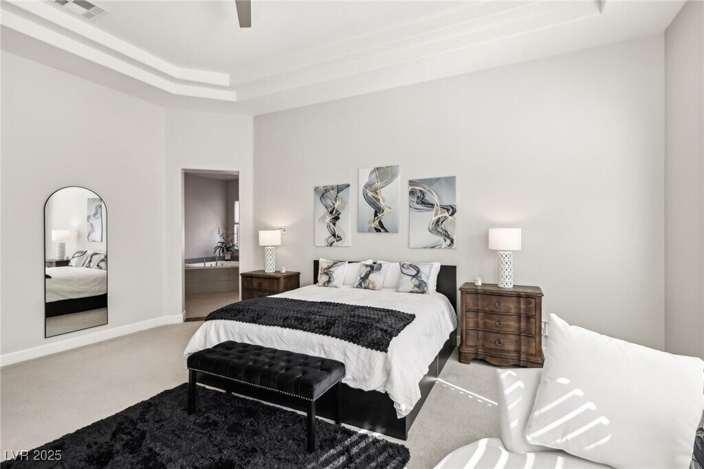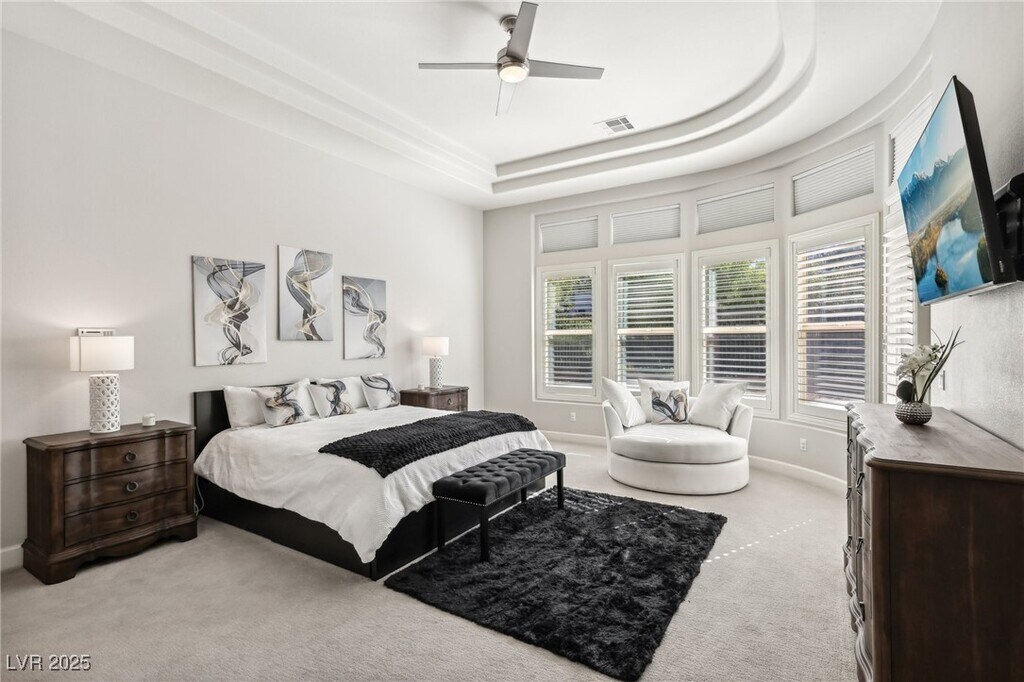 Welcome to your turn-key, fully furnished rental! This single-story residence is situated in a rarely-available corridor of the guard-gated MacDonald Highlands Community. The home highlights an open floor plan, 3 bedrooms, a spacious office/flex space, 3.5 bathrooms, and a wonderful great room that flows seamlessly into the kitchen that features a breakfast nook. Enjoy ultimate privacy, as there are no direct neighbors bordering the rear of the property. The primary bedroom suite features a luxurious bathroom, with dual closets, an oversized shower, a separate jetted spa bathtub, and large vanity. The Kitchen features stainless-steel appliances, a large pantry, and quartz countertops throughout. Garage is outfitted for an EV charger. MacDonald Highlands is home to the renowned Private 18-hole Dragon Ridge Golf Course and Country Club. Enjoy easy access to shopping, dining, entertainment, as well as close proximity to the airport and the Las Vegas Strip.
