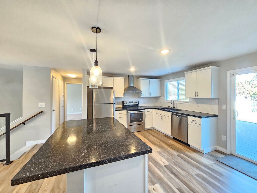 Welcome to this stunning split-level home located in upper South Hill. This home boasts three spacious bedrooms, two full bathrooms and comes with brand new carpet. The main floor is home to a beautiful kitchen, complete with stainless steel appliances and modern white cabinets. The bright and spacious living room is a perfect gathering space, featuring a real wood fireplace for those cozy nights in. The dining room, with its sliding door, opens up to a large deck and a fully fenced backyard, perfect for outdoor entertaining. The primary bedroom is generously sized and conveniently has direct access to the main floor bathroom, which features a large double sink vanity with ample cabinet space. Venture downstairs to discover two additional bedrooms, a bathroom with a walk-in shower, a laundry room with washer and dryer hook-ups, and a second living room equipped with a wood stove. To top it all off, this home comes with a 2-car garage, providing plenty of space for parking and storage. This home is a perfect blend of style, comfort, and convenience. Located conveniently close to Manito Golf and Country Club, Manito Park, shopping, restaurants and much more. One dog is allowed with a $450 non-refundable fee. Utilities are not included in rent. Tenant responsible for all utilities and yard care. $8.95 Rent Plus (optional) This is a NO smoking property Professionally Managed by Guenther Property Management Contact us at to schedule a showing. Before you apply, please consider the following: 1. Applicant(s) must be a minimum of 18 years of age. 2. Each applicant will be required to apply individually including married couples. 3. Gross monthly household income must equal two and half (2.5) times the stated monthly rent. 4. Credit score of 675+ is required 5. No prior evictions, or owning money to previous landlords. 6. No felony on a background. 7. Guenther Property Management does not accept comprehensive reusable tenant screening reports.
