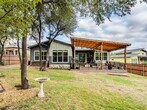 Welcome to this stunning single-story home in Deer Creek Ranch, featuring modern design and thoughtful upgrades throughout. With 3 bedrooms, 2 bathrooms, a dedicated office/study with French doors, and 2 car garage, this home offers an open floorplan perfect for entertaining and everyday living. The living areas feature high ceilings and beautiful wood floors. The gourmet kitchen includes a large island, quartz countertops for easy maintenance, and a large pantry. Refrigerator, washer, and dryer are included, and the home also has a water softener and water filtration system with new filters. Step outside to your private backyard oasis, a spacious fenced yard with mature trees, a large shed, a custom deck, and a covered patio ideal for relaxing or entertaining. Patio furniture and playscape stays with the home, ready for outdoor enjoyment. The home sits on a large lot with plenty of space for kids to play. Yard maintenance, pest control, and septic maintenance are included for added convenience. Walking distance to the neighborhood lake/ park with a playground, sand volleyball court, walking and hiking trails, and fishing. Zoned to the highly regarded Lake Travis Independent School District, this home offers excellent access to downtown Dripping Springs, Hill Country Galleria, breweries, wineries, and parks, combining comfort with convenience. Experience modern living in a serene Hill Country setting, schedule your showing today!