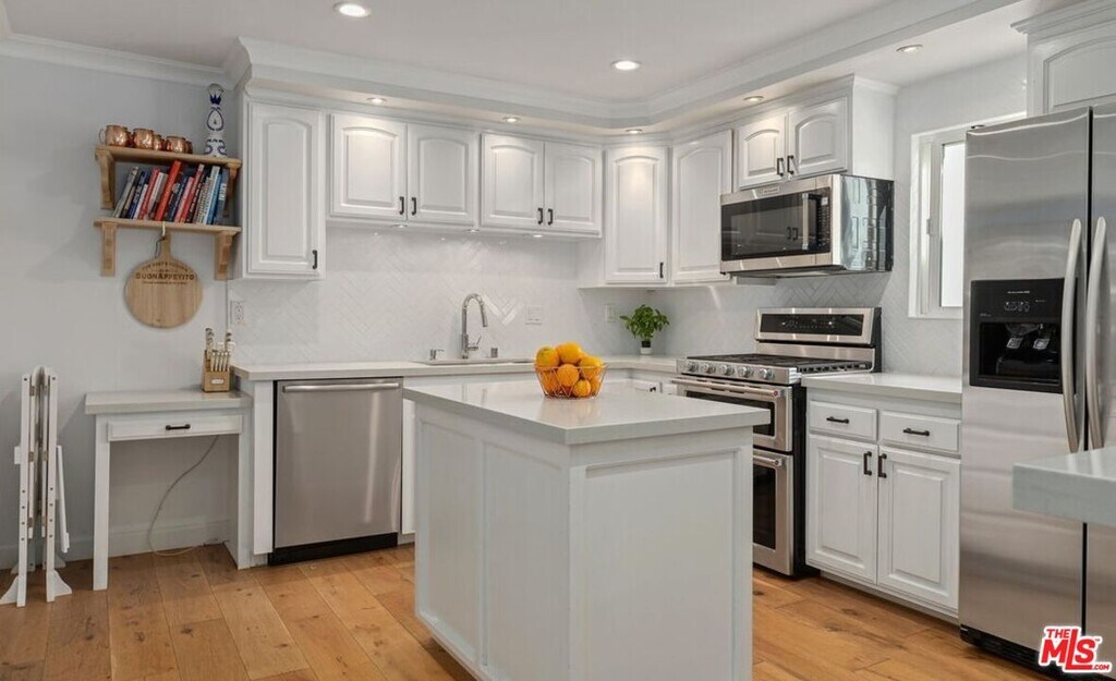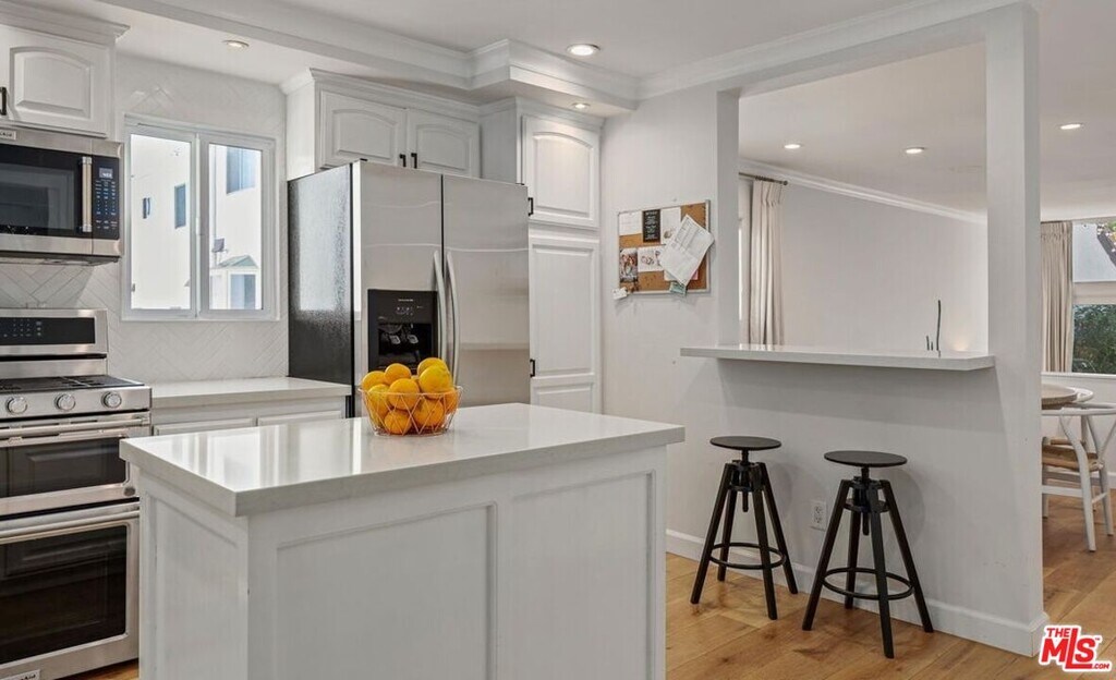 Beautifully remodeled townhouse located in The Highlands in Pacific Palisades. It features 3 bedrooms, 3 bathrooms and an open floor plan with wide-plank engineered hardwood floors throughout. The living room has a fireplace, high ceiling, and a large enclosed patio. The spacious open kitchen has quartz countertops, an island and breakfast bar with pass through to the Dining Area. There is room off the kitchen that can be used as a den, office or 3rd bedroom. The primary bedroom has an ensuite bathroom, walk-in closet and attached room that makes the perfect home office. The 2nd bedroom has a full ensuite bathroom. There is a private 2-car garage with direct entry, newer HVAC with Nest control. With an abundance of HOA amenities including tennis courts, swimming pool, spa, gym, sauna, and guest parking, this property truly offers it all. Owner pays for water and HOA dues. MLS# 25604173