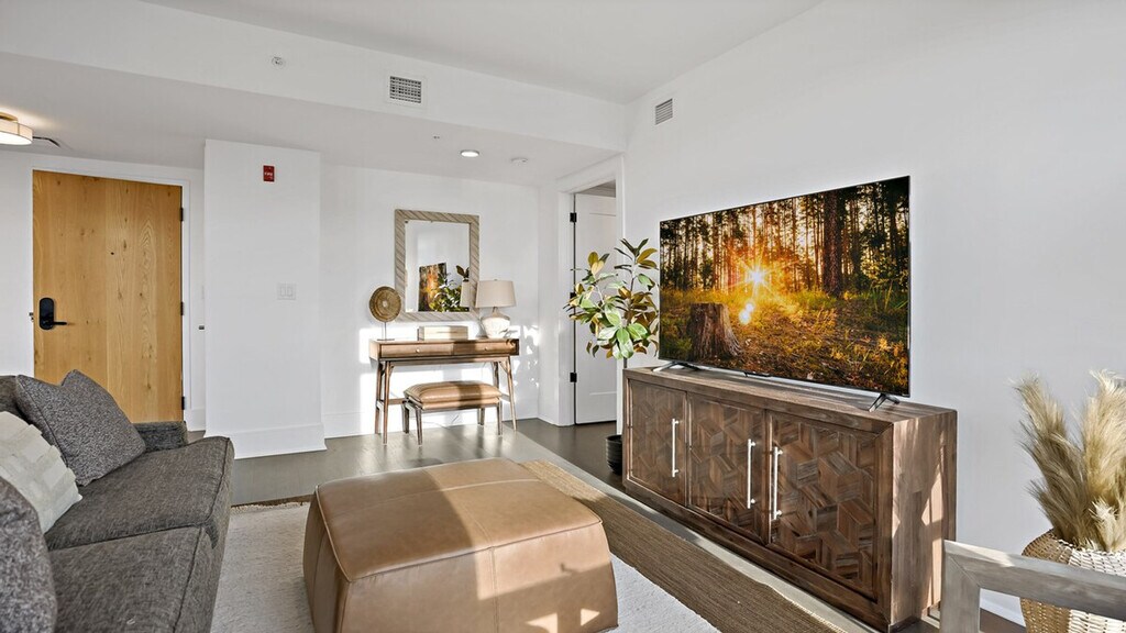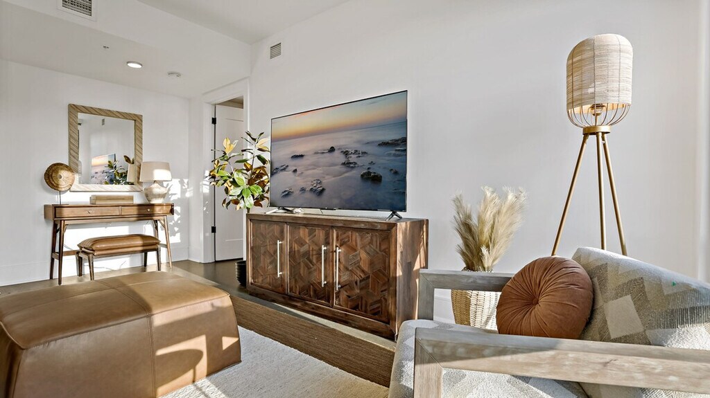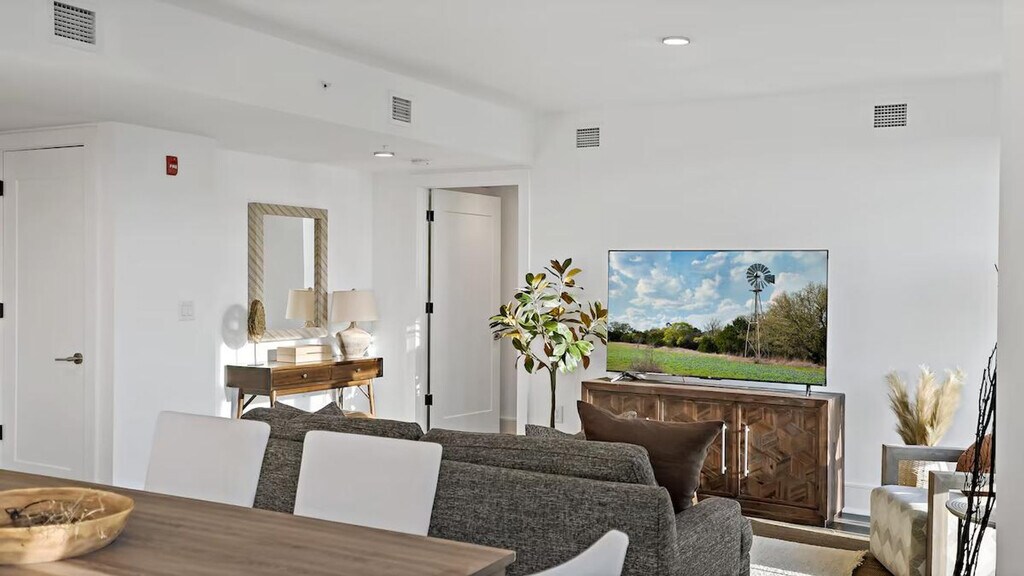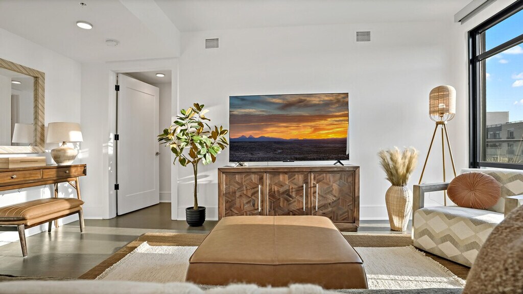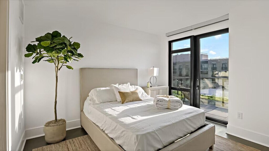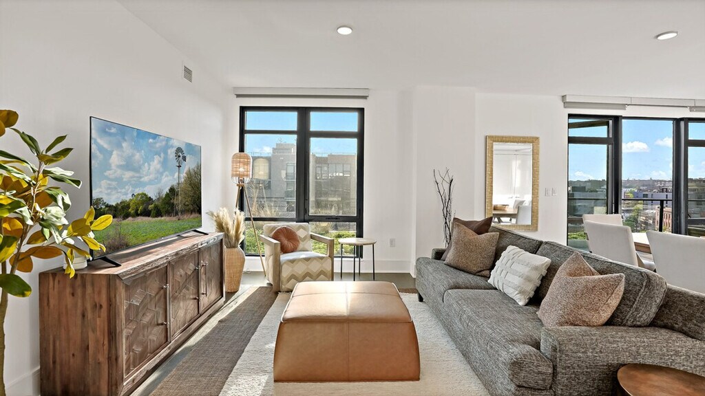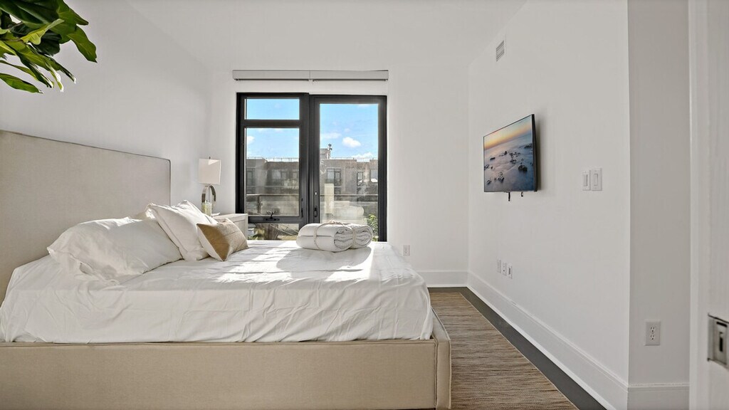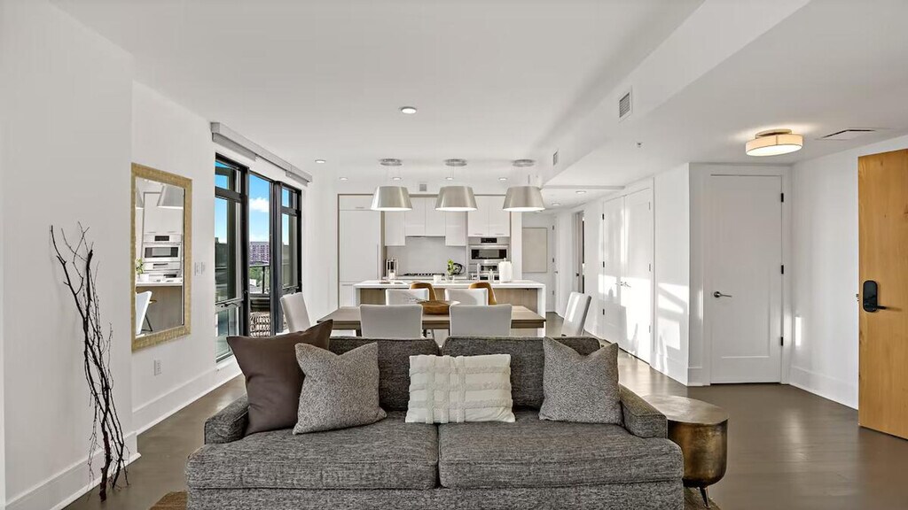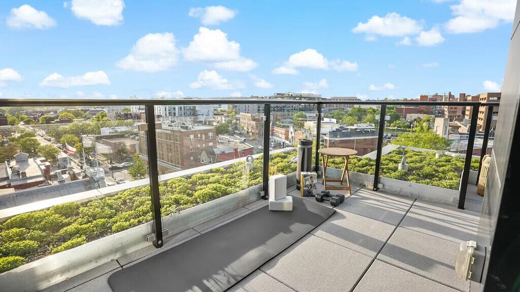 Feel at home in this sunny penthouse retreat in downtown DC, perfect for couples, small families, and business travelers. This spacious 2-bedroom, 2.5-bathroom apartment features stunning Capitol views and three balconies. The apartment is fully equipped with all the essentials for a comfortable stay, including a modern kitchen, a cozy living area with stylish furnishings, air conditioning, and exercise equipment. For your convenience, a washer, dryer, and all necessary toiletries are provided. Parking is available in the building garage for $50 per day per vehicle, with monthly options available. Pets are welcome for $25 per night per pet, with a maximum of $350 per month per pet. Located in the heart of the vibrant Shaw area, this apartment is just steps away from dining and entertainment options. This is Shaw, so expect a lively scene, especially on weekends. You’re steps away from bars, restaurants, and nightlife. Includes a dedicated workspace. [SI]