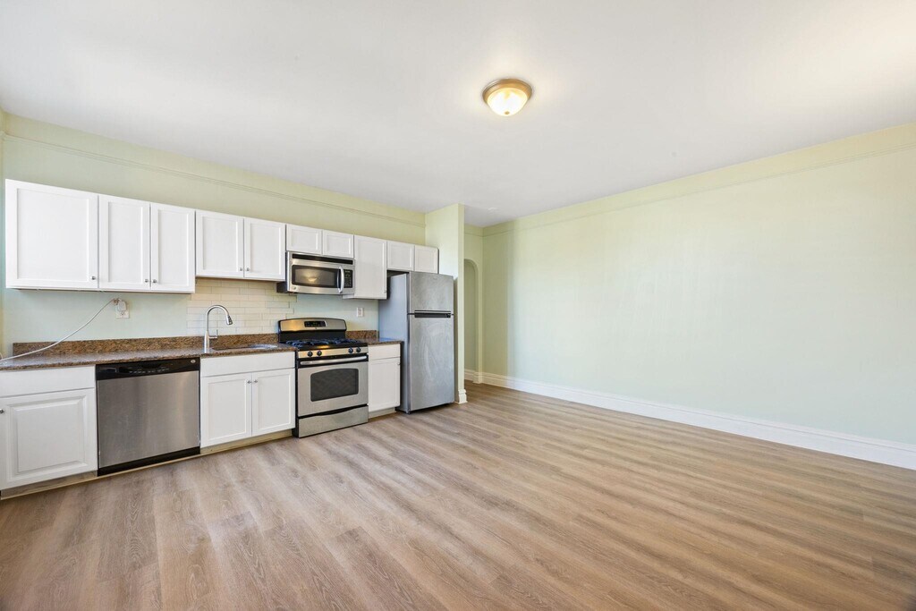Welcome home to this NEWLY renovated 2-bedroom apartment flooded with natural light at the heart of Union City. Great family home with two king-sized bedrooms and 1 full bathroom, and plenty of closet space. New flooring and new cabinets make it an extremely enticing home. The apartment is only a 2-flight walk up on a well maintained building with laundry in the basement. A spacious living room with an open kitchen with gas stove, high ceiling, and the bus stop is right across the street. Ample restaurants, grocery stores and parks nearby. Call today before it’s rented!