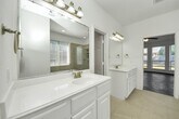 Meticulously maintained two-story traditional-style residence located in the desirable master-planned community of Bridgeland. The home offers approximately 2,943 sq ft of living space Main floor features a spacious living room with high ceilings and abundant natural light,flowing into an open kitchen with island and breakfast nook—ideal for daily living and entertaining. The primary bedroom is also located on the main level,boasting a walk-in closet and en suite bath with double vanities,separate tub & shower,and new glass shower doors. Upstairs you’ll find a large game room,dedicated media room,and two additional bedrooms connected via a Jack-and-Jill bath. Interior has been refreshed with new paint and carpet; flooring includes tile throughout the main living areas. An upgraded two-stage 16-SEER HVAC system ensures efficient comfort year round. Exterior and landscaping are turnkey and move-in read MLS# 47330928