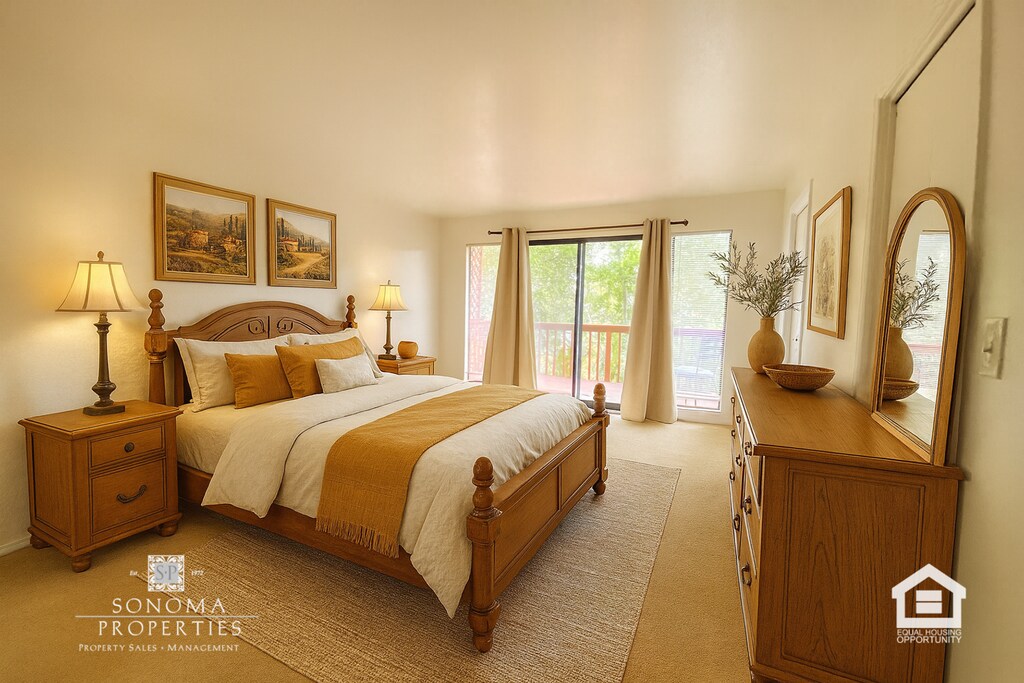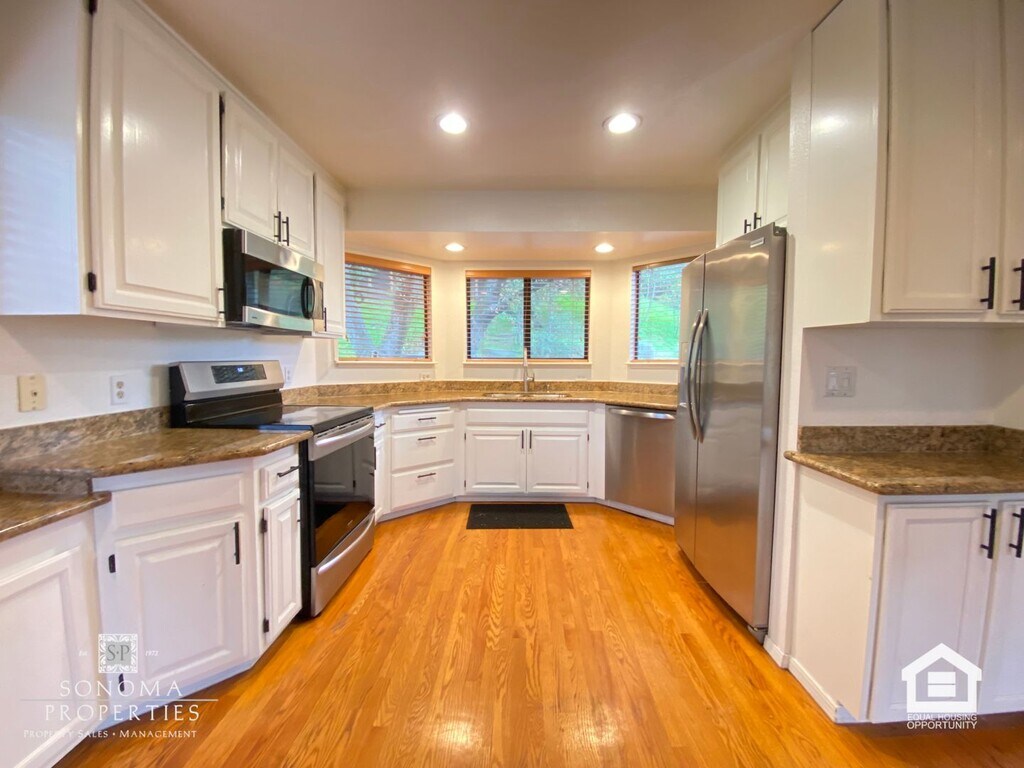 Welcome to this spacious and versatile upstairs/downstairs home offering 3+ bedrooms and 2 bathrooms in a bright, comfortable setting. The main living areas feature hardwood floors, while the downstairs level offers cozy carpeting for added warmth. A charming sunroom brings in abundant natural light, and the expansive deck provides gorgeous views—perfect for relaxing or entertaining. The home includes a well-appointed kitchen with stainless steel appliances, a welcoming living room with a fireplace, and ample storage throughout. A 2-car garage adds convenience, and the layout offers flexibility for a home office, guest room, or additional living space. Available now! One pet is negotiable. Don’t miss this inviting home—contact us for a viewing! For more information, please call Sonoma Properties at . Sonoma Properties DRE License #01931046