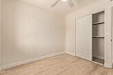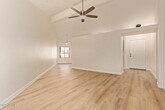Light,bright,exceptionally clean & move-in ready! This single-level,2 bedroom home includes modern updates everywhere: luxury vinyl plank flooring,fresh paint,lighting,baseboards,electrical outlets,& new ceiling fans in every room! The oversized primary bedroom features a large walk-in closet & unique bathroom setup w/separate private dual vanities + shared shower/toilet roommaking mornings a breeze. The kitchen shines w/ample counter & cabinet space plus a sunny eat-in breakfast area,perfect for casual meals. Assigned & covered parking is directly behind a private,gated patio w/storage closet,providing direct access to home. Community perks include sparkling pool & expansive HOA-maintained grassy areas w/walking paths. All this plus washer,dryer & refrigerator included!