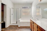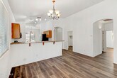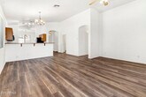 Discover this charming 3-bedroom,2-bathroom home featuring a bright,open great room floor plan perfect for modern living. The spacious kitchen includes all appliances,a pantry,breakfast bar,and a cozy dining nook. The primary suite offers a relaxing retreat with dual sinks,a separate tub and shower,and a generous walk-in closet. Additional highlights include newer vinyl flooring throughout,wood blinds,a large laundry room,and a 2-car garage. Ideally located near shopping,dining,and the Surprise baseball stadium,this home blends comfort and convenience in one desirable package!