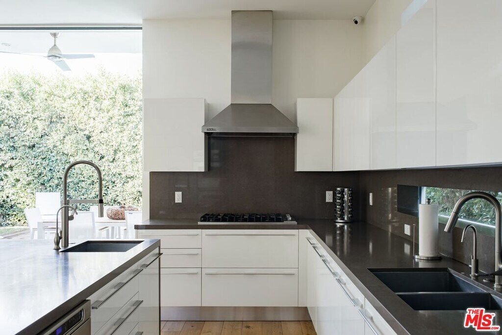 Welcome to this furnished modern home in the heart of Beverlywood. This private and gated bright home features 5 bedrooms, 4.5 baths, pool, spa, state-of-the-art surround sound, Chef's gourmet Kitchen and and four parking spaces. The property can be delivered furnished or unfurnished. You will also find spacious walk-in closets, a laundry room with additional storage and oversized balconies with views. 3 of the 5 bedrooms feature en-suite bathrooms. The other 2 bedrooms share a jack-and-jill bathroom, however, shower and toilet are private from sinks in this bath. 3 of the bedrooms feature large balconies. One bedroom down and four bedrooms up. The yard is completely private and offers a heated salt-water pool and spa. The home also offers a soft water system, filtered drinking water and instant hot water. MLS# 26710129