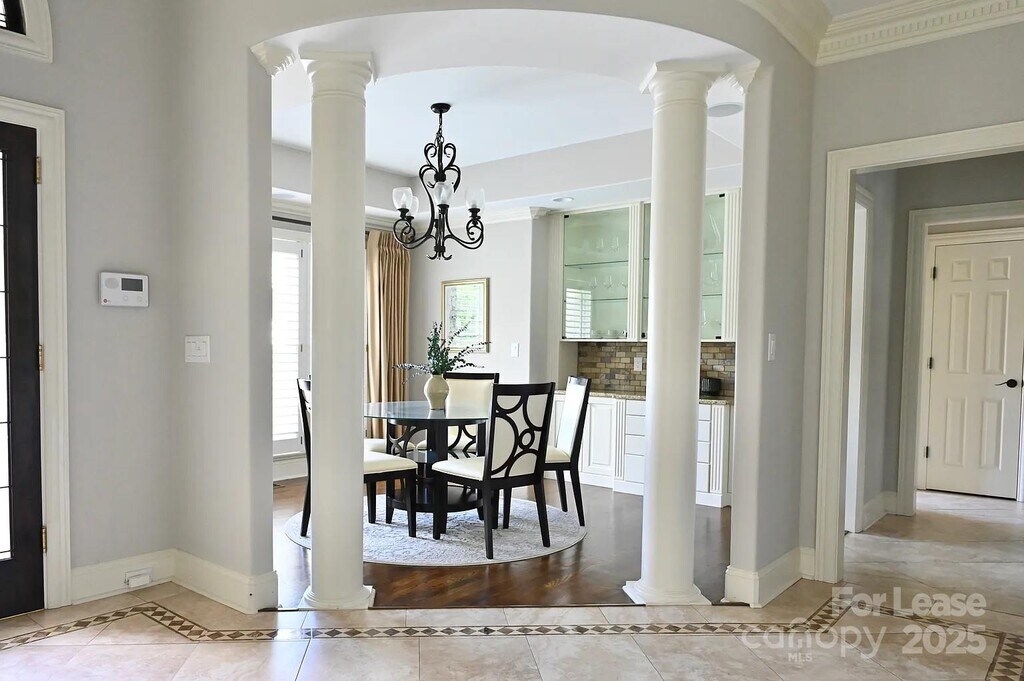 Immaculate,recently updated 4 bedroom,4.5 bathroom home at the Peninsula Golf Club offers a blend of classic elegance and modern amenities. A private entry,tree lined driveway leads to a 3 car garage. The fully furnished home showcases custom cabinetry and hardwood floors throughout,seamlessly integrating traditional style with contemporary touches. Open living area extends to a spacious rear patio,ideal for entertaining. Enjoy direct views of the golf course—currently being renovated—from the kitchen,breakfast nook,living room,office,and two bedrooms. Primary bedroom boasts a luxurious,spa-like bathroom,while the fourth bedroom features a versatile bonus room perfect for a home gym. Home also has plantation shutters throughout as well as central vacuum system. Recent upgrades in 2023/24: Roof,stucco,HVACs,fireplace insert,dishwasher. Convenient to everything Cornelius has to offer including the lake.