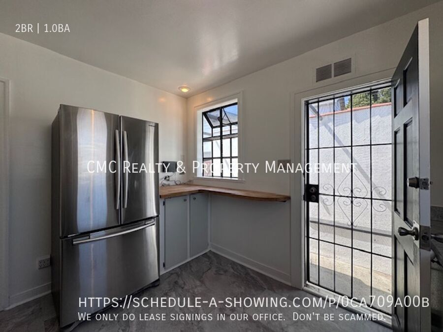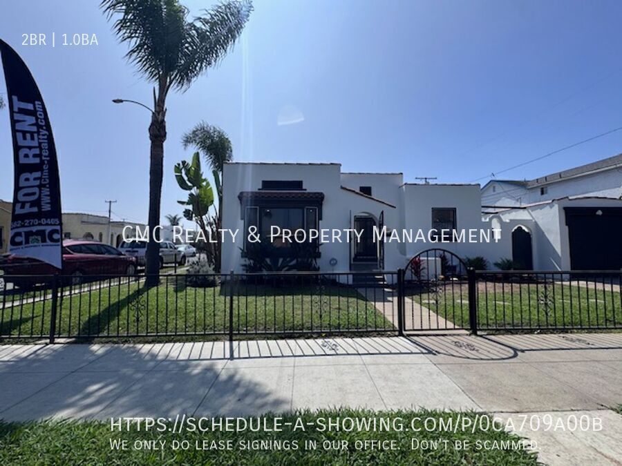 Welcome to this beautifully maintained Spanish-style residence, now available for rent. This inviting home offers a spacious living room featuring elegant freshly re-finished wood flooring and recessed lighting, creating a warm and comfortable living space. The formal dining area includes a ceiling fan, perfect for everyday comfort, while the kitchen is equipped with tiled countertops and a charming garden window that fills the space with natural light. The home also features well-proportioned bedrooms, ideal for relaxation, along with a detached one-car garage for added convenience. Don’t miss the opportunity to lease this character-filled home in a desirable location. The house has/is: -2 bed/ 1 bath corner house -NEW interior paint -NEWER Curtains -Freshly painted closets -NEW Toilet -Floor heater -Gas Stove -Stainless steel refrigerator -Freshly refinished hardwood floor -New kitchen floor -New ceiling fan in the dining room -Front and back yards -One detached car garage -$60 application fee per adult -Owner pays for gardener -Tenants pay for all utilities -Mandatory "Resident Benefit Package" of $40 per month extra. This amount includes "Tenant Liability Insurance". If you have your own TLI, the RBP is only $30.99. PLEASE BE AWARE OF RENTAL SCAMS: We caution all applicants to be careful in researching the legitimacy of any potential rental listings and perform appropriate due diligence. All deposits, rents and rental agreements should only be executed at CMC Realty & Property Management, 5320 2nd St. Suite 11 Long Beach CA 90803. If you are being asked to meet someone with cash, or if you are being asked to send money via Western Union, Money-Gram, or Prepaid Visa card these are possible signs of rental listing scams used to defraud applicants. DRE License #01518510 RENTAL CRITERIA: 600+ FICO score 2.5X income vs. rent No evictions on record If you are approved to be one of our tenants, there is a mandatory "Tenant Resident's Package" of $39.00 to be paid monthly. Back Yard Detached One Car Garage Front Yard Tenant Pays For All Utilities