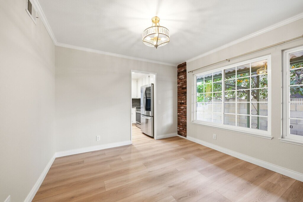 Bright, cheerful, and full of charm, this inviting home offers wood-like flooring throughout and an abundance of natural light that creates a warm, airy feel. The living area features a cozy fireplace, perfect for relaxed evenings and effortless entertaining. The kitchen is both stylish and functional, showcasing stainless steel appliances and a clean, welcoming layout. Outdoors, the gorgeous front yard adds standout curb appeal, while the backyard is designed for easy enjoyment with a covered concrete patio and a grassy area, ideal for dining, lounging, or play. Citrus trees and colorful flowers enhance the space with a fresh, garden-inspired vibe. Additional highlights include street parking, a driveway, and a garage, offering plenty of convenience. A truly sweet home with thoughtful details and lovely indoor-outdoor living.