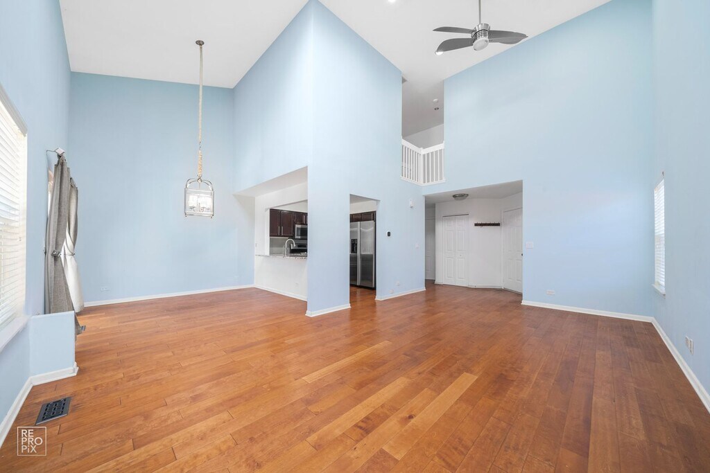 Beautiful 2 bedroom 2.5 bath home with 2 car garage! Maple and bamboo hardwood floors throughout entire home! Open floor plan boasts soaring 2 story living room with skylights! Kitchen features granite counters, backsplash & stainless steel appliances! Sunny dining room with sliding glass doors that lead to paver patio and private fenced yard! Spacious master suite offers walk in closet and gorgeous full bath with natural stone tile surround! Nicely updated full hall bath! Convenient 2nd floor laundry room! Great location near shopping, dining and schools plus easy access to tollway and Metra! Truly a must see! **CREDIT REQUIREMENT** 650+ No Exceptions - NO SHORT-TERM LEASE.