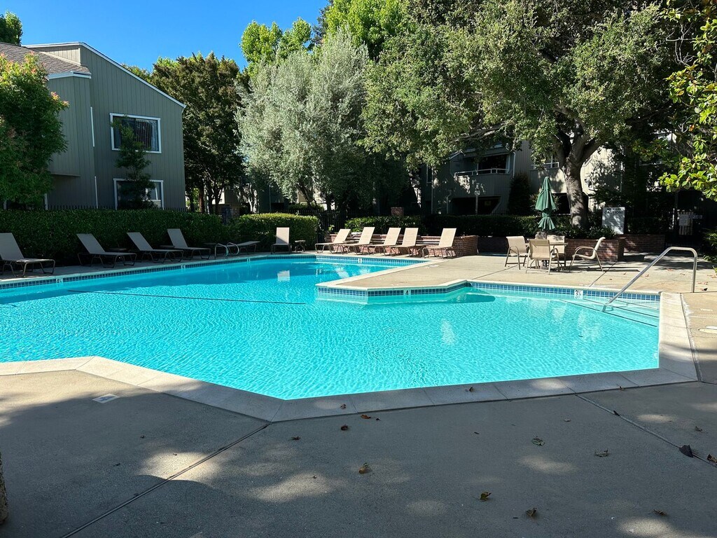 Large 2 bedroom 2 bath condo located within walking distance to eBay. This upstairs condo features 2 large bedrooms, spacious kitchen, private balcony, central A/C, heat, fireplace, indoor laundry with washer and dryer. The kitchen has dishwasher, stove, garbage disposal, refrigerator and pantry. Primary bedroom with large walking closet. Detached 1 car garage. The condo is located within the Hamilton Commons Home Owner Association featuring 1 pool, BBQ area with picnic tables in park-like surroundings. Centrally located near shopping, restaurants and downtown Campbell. Easy access to freeway 17, 880, 85 and 280. Walking distance to Los Gatos Creek trail for walking and biking. Water, garbage and HOA fee paid.
