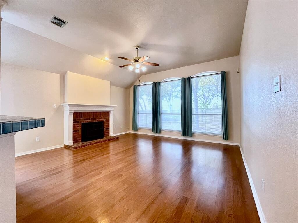 Welcome to this beautifully maintained single-story home in the desirable Scofield Farms in North Austin. With four bedrooms, high ceilings, multiple living and dining spaces, plus a two car garage, this home offers both comfort and flexibility for everyday living. The inviting entry opens to a spacious formal living and dining area with wood-look laminate flooring that flows toward the centrally located kitchen and family room. The kitchen is positioned between the two living areas and features tile flooring, a center island, built-in appliances, and abundant cabinet and counter space. It also offers a casual dining area and a breakfast bar that opens to the family room—ideal for entertaining or gathering with loved ones. The family room boasts a cozy gas-log fireplace and large windows that fill the home with natural light. The MIL-style floor plan offers three secondary bedrooms and a full bath with a large vanity and tub-shower combo. The generous layout primary suite, tucked on the back side of the home, features a large walk-in closet and private access to the backyard. The en-suite bath includes dual vanities, a separate soaking tub, and a walk-in shower. Enjoy peaceful mornings or relaxing evenings in the shady backyard with mature trees —no neighbors directly behind, just green space! The laundry room is conveniently located off the hallway. Tenants have access to the community pool, shaded playground, and Scofield Farms Park, all within walking distance. Restaurants and coffee shops are nearby, and major employers like Samsung and Apple, along with The Domain, Mopac, and I-35, are just minutes away. Pets welcome—small pets preferred, but negotiable. $300 non-refundable pet fee/pet and $15 pet rent /pet apply.