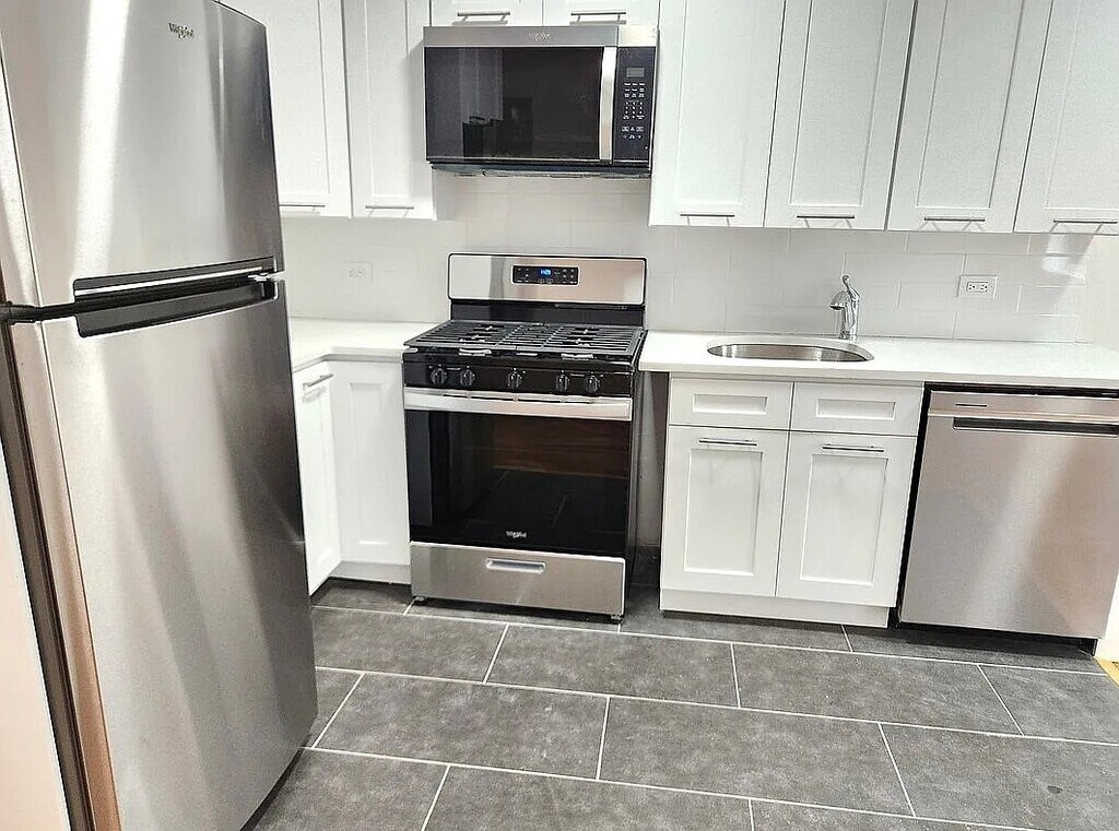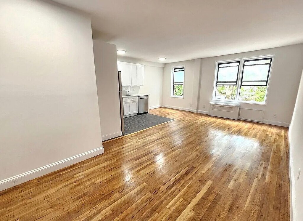 Welcome to this beautifully renovated one-bedroom corner unit in an elevator condominium building in the heart of Pelham Bay. Step into a spacious living room and decorate it with your most confortable furniture and in any layout setting. This sun-filled living room featuring three windows with leafy treetop views and an open-concept layout. The modern kitchen showcases large tile flooring, stone countertops, and a full stainless steel appliance package including refrigerator, oven, microwave, and dishwasher. Soft-close cabinets and drawers provide ample storage, and the flexible layout allows you to choose the perfect spot for your dining area. Rare Find! Renovated One Bedroom Condo in Pelham Bay