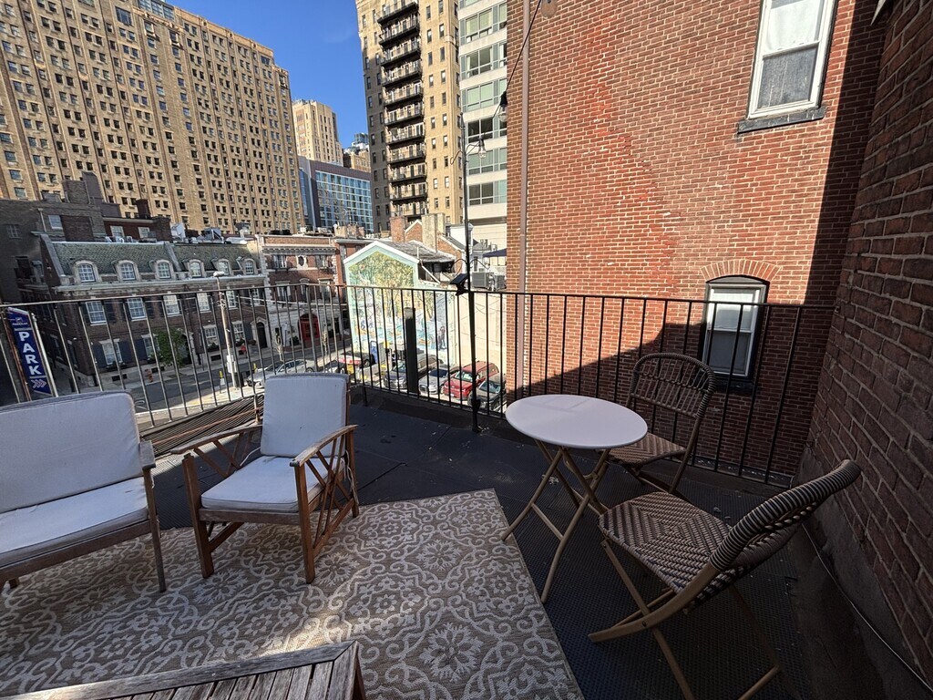 Welcome to 1725 Spruce Street, a spacious one-bedroom apartment located in the heart of Rittenhouse! Situated on the third floor, this walk-up unit offers an expansive layout with plenty of room to live and work comfortably. One of the standout features of this apartment is the private outdoor deck, perfect for relaxing, entertaining, or enjoying some fresh air right at home. The building also offers convenient coin-operated shared laundry on the second floor. Rent is $1,850 per month, with a $15 monthly water charge. Tenants are responsible for electric and cooking gas. Pets under 30 lbs are welcome for an additional $50 per month. Don't miss your chance to live in a bright, spacious unit with outdoor space in a prime location! All showings are by appointment only; please respond to this posting and include your cell number to schedule. Apartments are first come, first served.